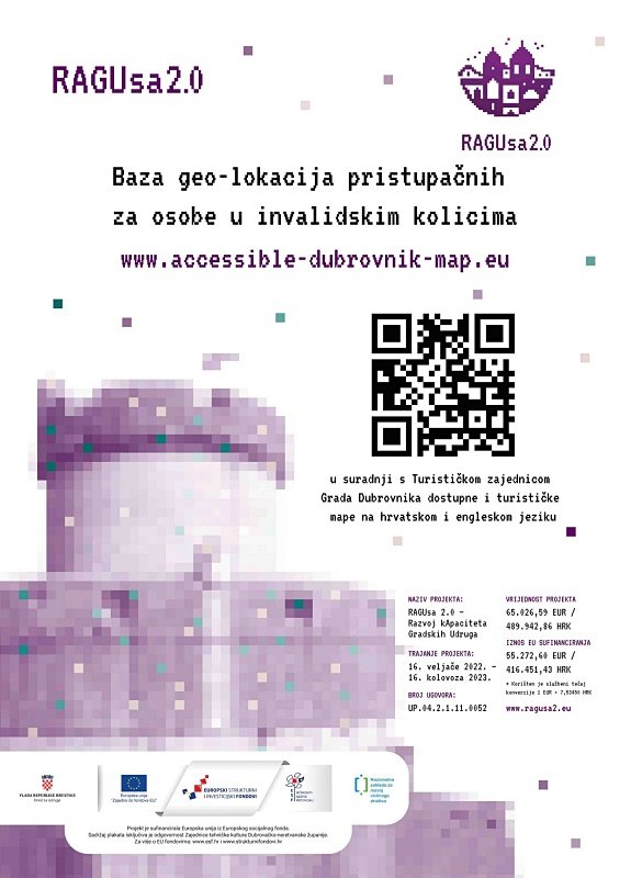Baza geo-lokacija pristupačnih za osobe u invalidskim kolicima, koja je predstavljena početkom godine, ostvarena je u sklopu projekta RAGUsa 2.0 – Razvoj kApaciteta Gradskih Udruga, kojeg provodi Zajednica tehničke kulture Dubrovačko-neretvanske županije u suradnji s partnerima.