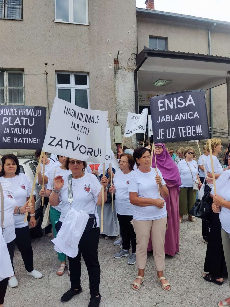 Brojni građani Jablanice i drugih gradova okupili su se večeras na protestu u ovom gradu kako bi podigli svoj glas protiv nasilja nad ženama i pružili podršku Enisi Klepo.