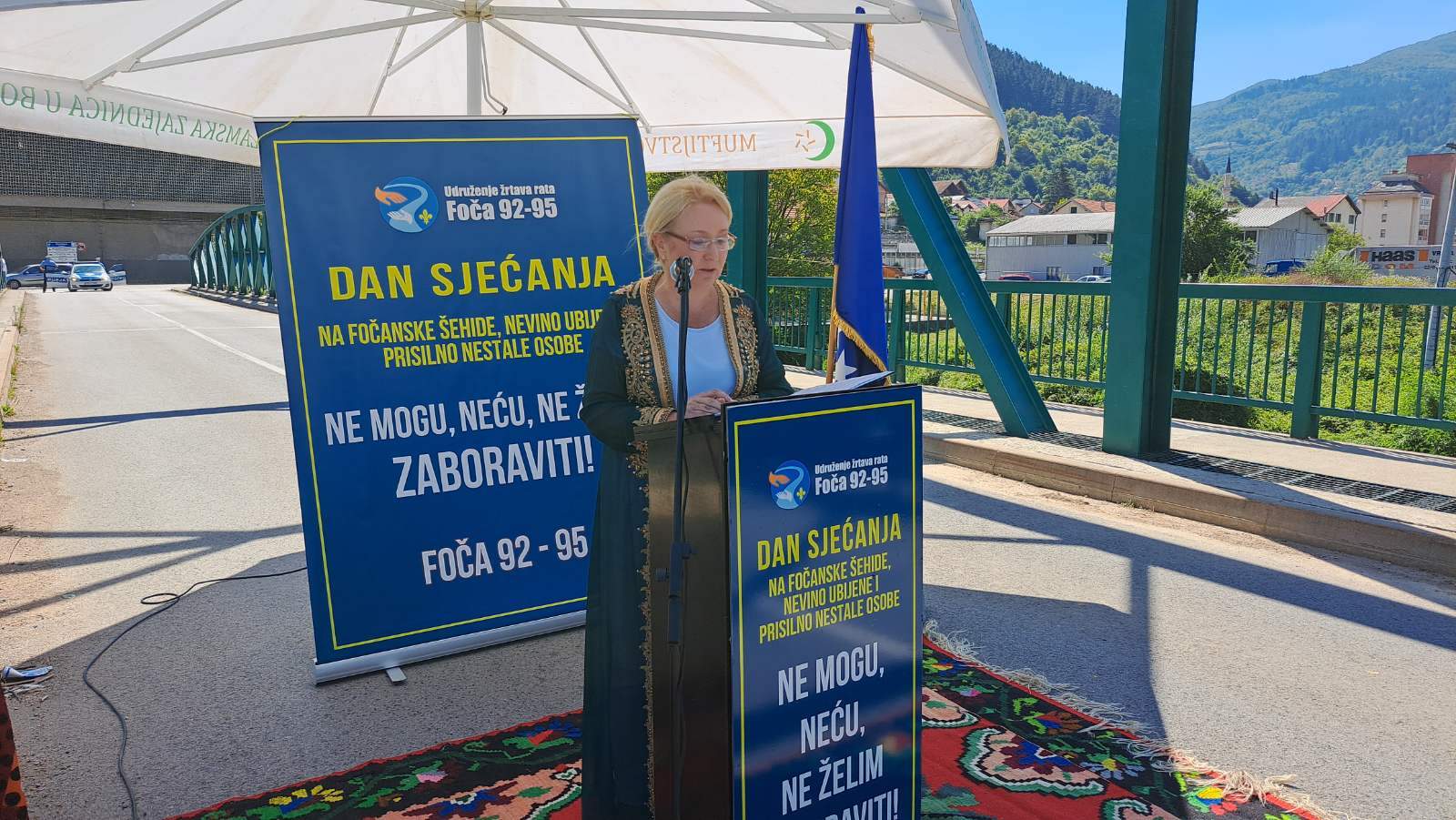 - Nakon 31 godinu od počinjenih zločina u Foči, sjećamo se, prvenstveno šehida. Zbog njih mi danas slobodno šetamo domovinom. Danas smo, nakon 31 godinu, na Karlovom mostu. S razlogom možemo reći da je to most smrti. Ovdje je putovanje mnogih naših najmilijih završeno, a njihove kosti su završene u ovoj hladnoj i hirovitoj rijeci Drini, koja je postala najveći mezaristan - izjavila je Midheta Kaloper, predsjednica Udruženja.