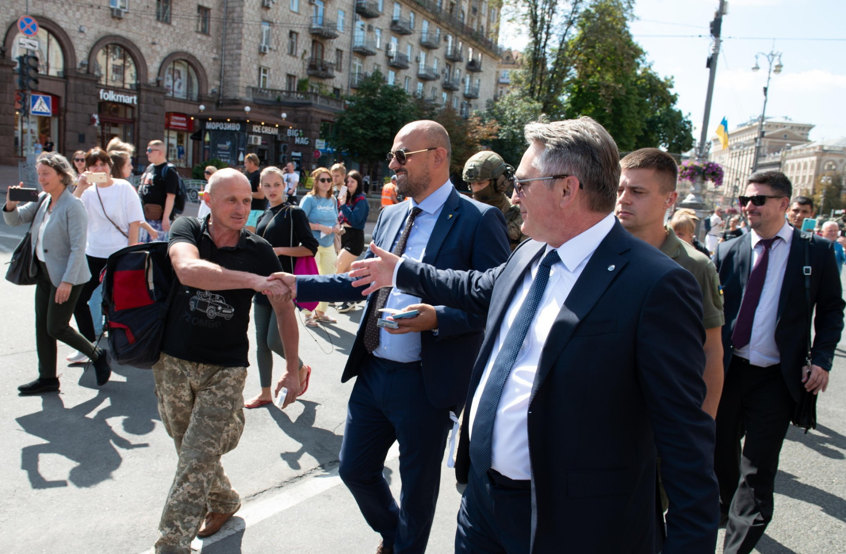 Komšić i Bećirović su se tokom obilaska glavnog grada Ukrajine pozdravljali sa građanima.