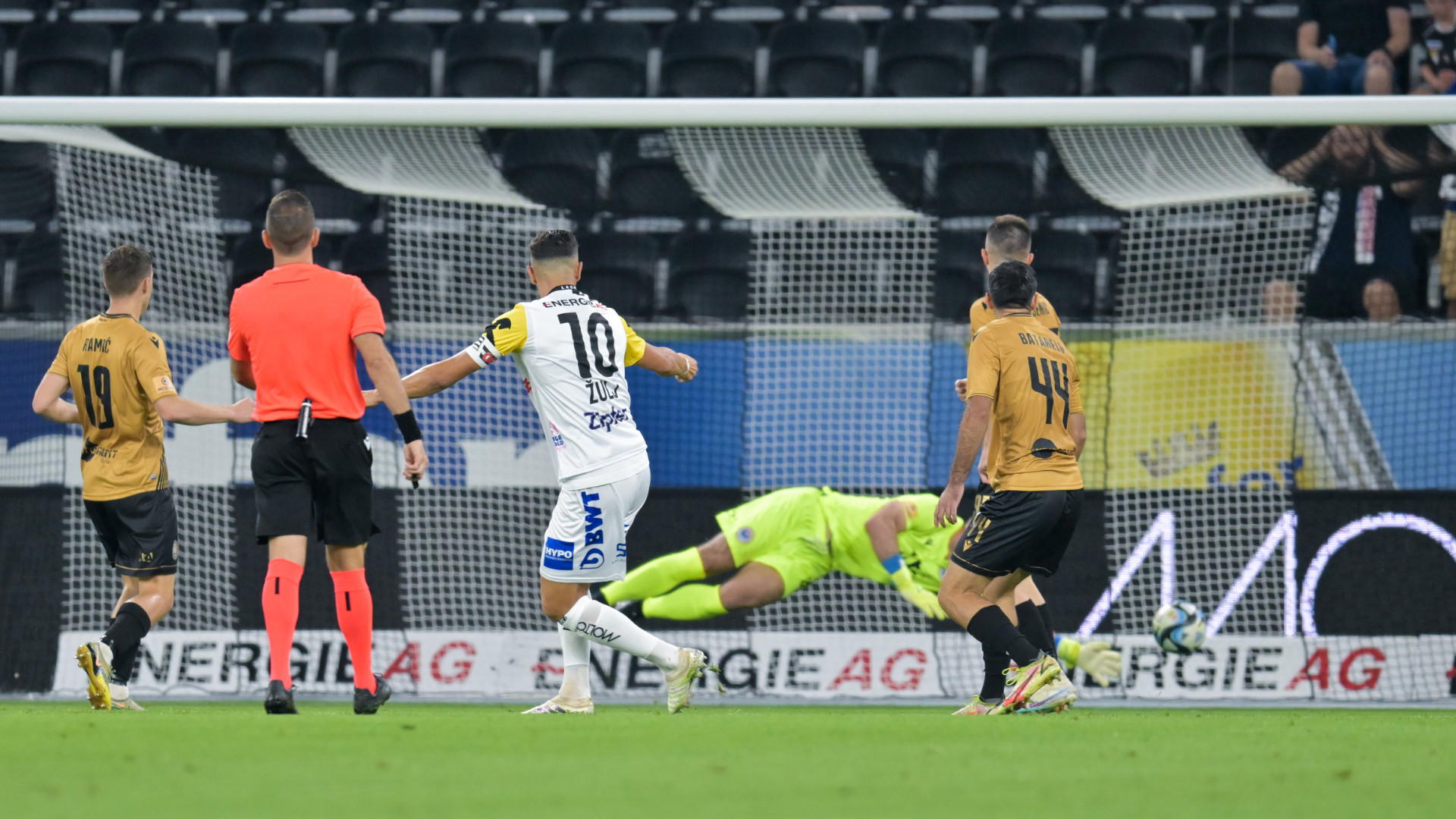 Već u četvrtoj minuti kapiten Robert Žulj koristi smušenu reakciju odbrane Plemića i preciznim prizemnim udarcem dovodi domaćina na Raiffesen Areni u vodstvo.