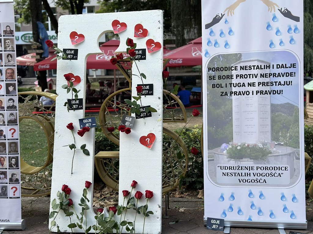 U organizaciji Udruženja „Porodice nestalih“ Općine Vogošća sa pitanjem „Gdje je?“ i uz instalaciju nestalog lika u Jošaničkoj ulici porodice nestalih podsjetile su da tragaju za još 59 nestalih građana Vogošće.