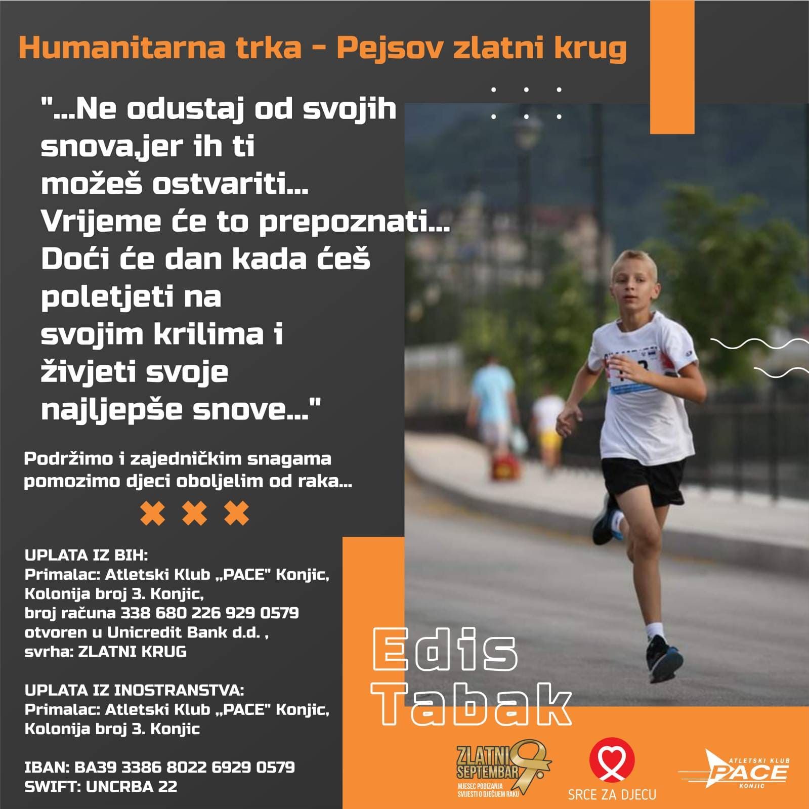 Ovaj događaj ne samo da promiče zdrav način života kroz sport, već i istinski pokazuje snagu zajedništva i humanosti u borbi protiv teških izazova koje djeca oboljela od raka svakodnevno susreću. Pace Konjic Atletski Klub zaslužuje svu podršku dok se trudi ostvariti ovaj nesvakidašnji cilj.