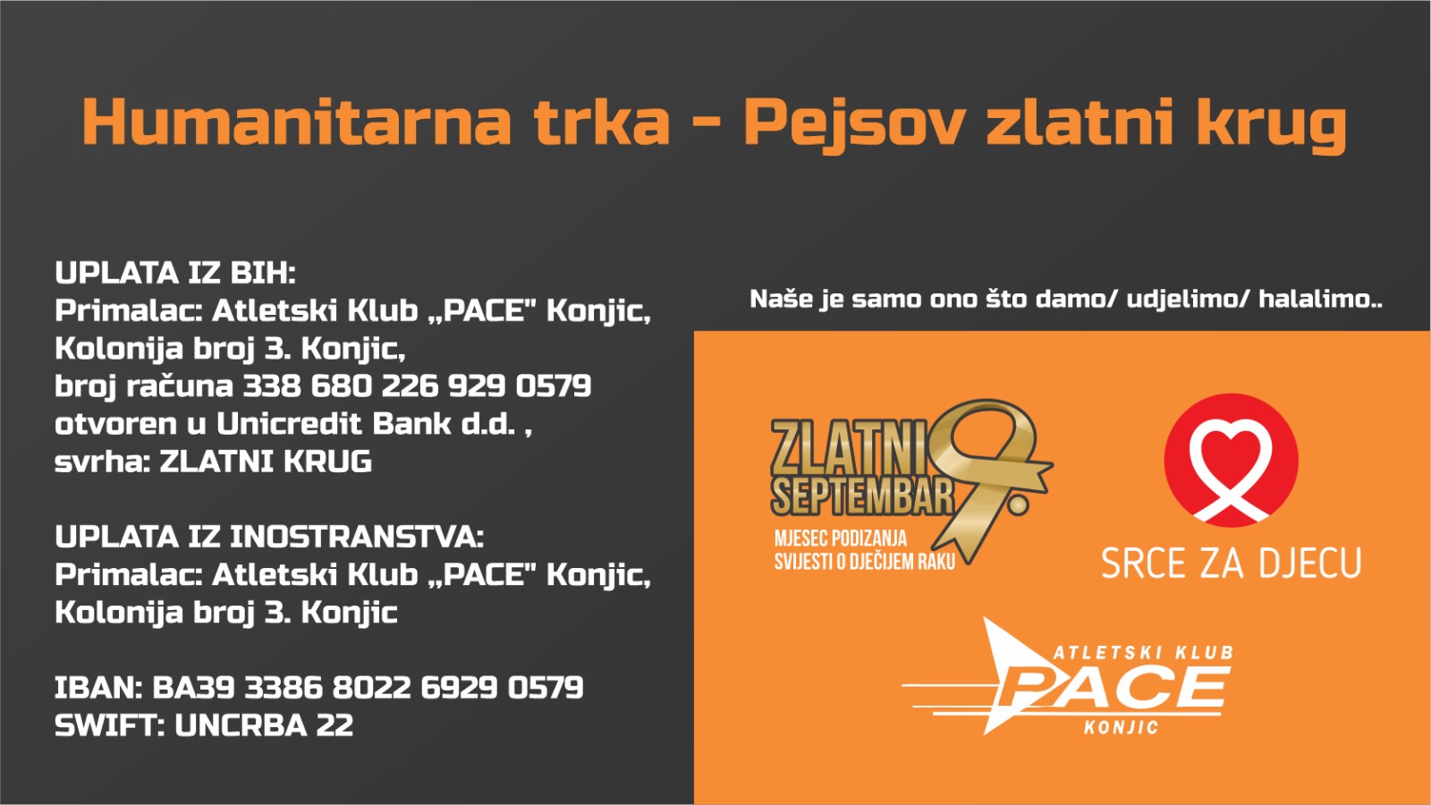 Ako želite doprinijeti ovom humanitarnom naporu, donacije se mogu izvršiti putem sljedećih informacija o uplati: