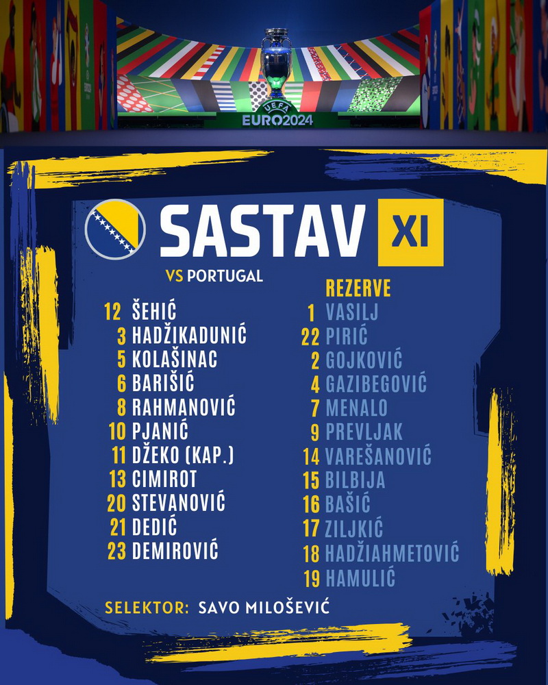 Fudbalska reprezentacija BiH večeras igra utakmicu kvalifikacija za Euro 2024 protiv selekcije Portugala.
