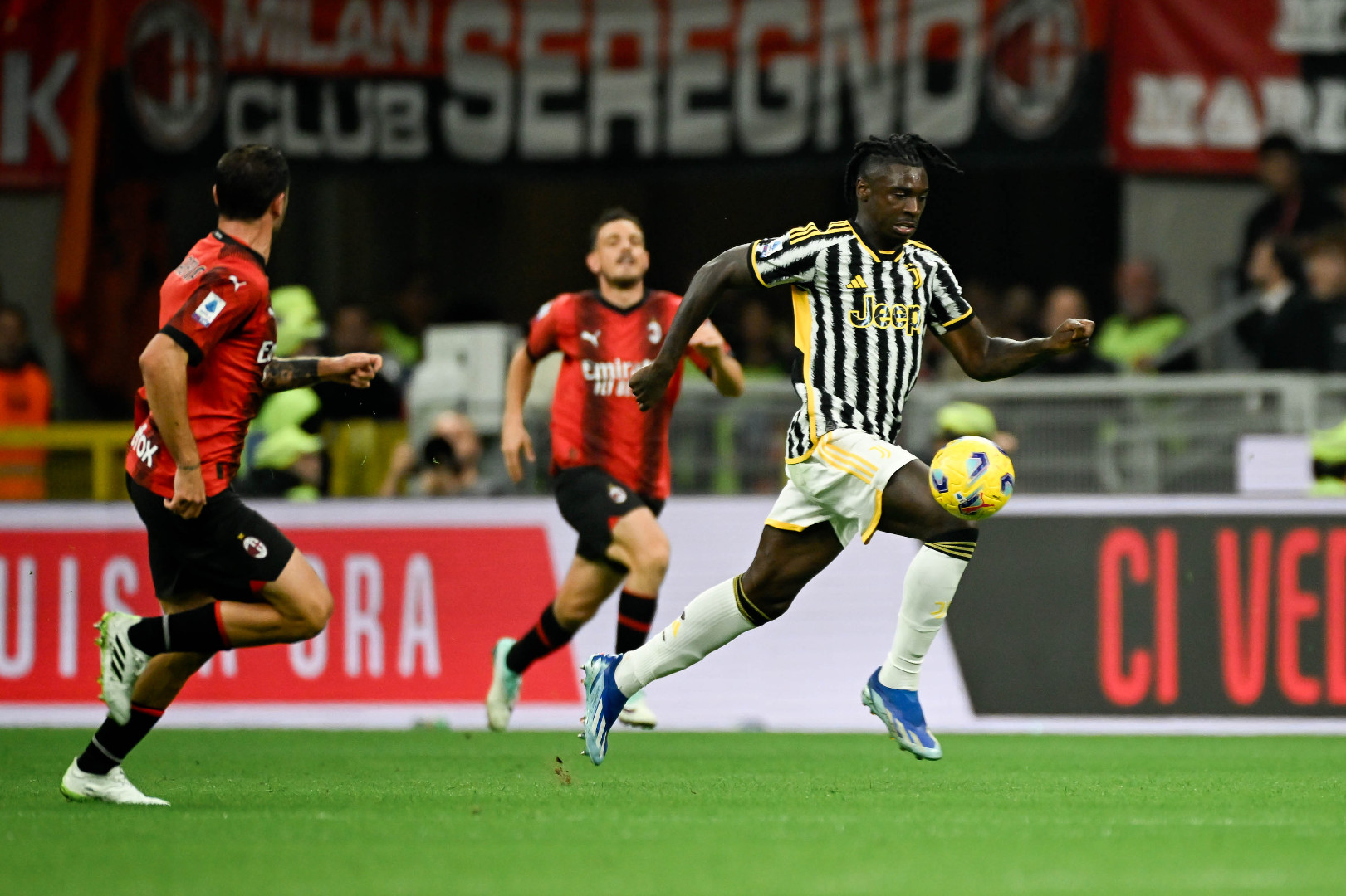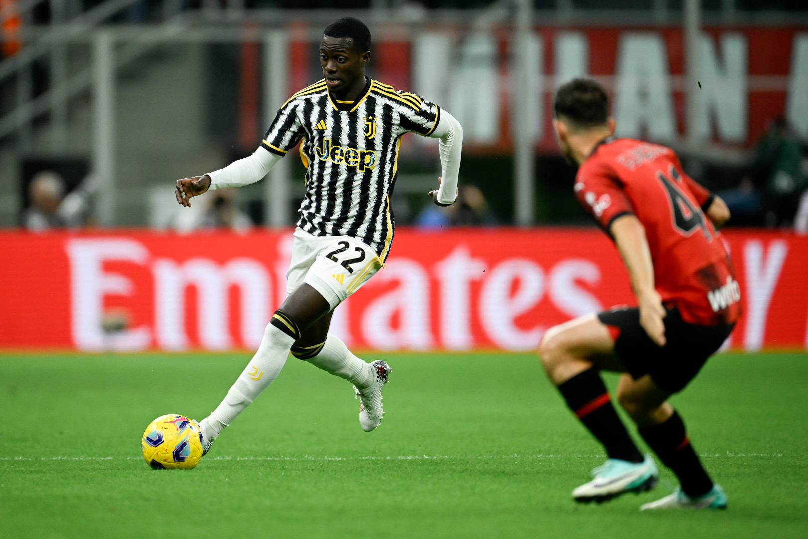 Ključan trenutak utakmice, koja je u prvom poluvremenu bila vrlo loša, dogodio se u 40. minuti kad je Thiaw u čistoj šansi za gol s leđa povukao i srušio Moisea Keanea. Dobio je direktni crveni karton i ostavio Milan s desetoricom, što je znatno olakšalo posao Juventusu.