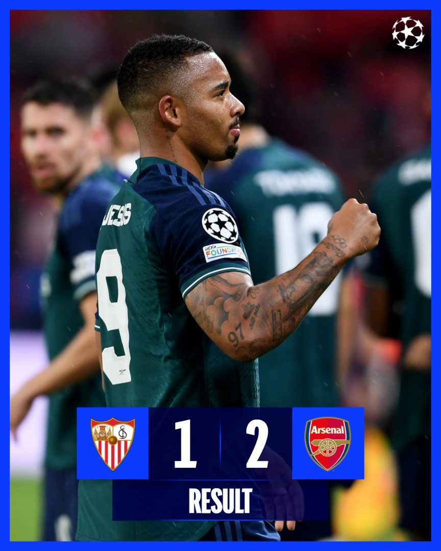 Sevilla - Arsenal 1:2 (Gudelj 59' / Martinelli 45'+4', Jesus 53')