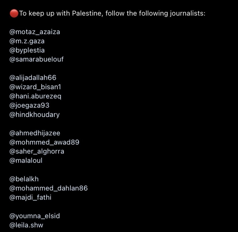 Tako se na društvenoj mreži X pojavio spisak Instagram stranica koje relevantno prikazuju sav užas stradanja iz Gaze.
