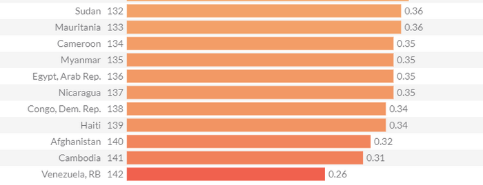 Najgore ocijenjena zemlja, po vladavini prava je Venecuela. Dok joj društvo u zadnjih deset najgore ocijenjenih čine: Sudan, Mauritanija, Kamerun, Mianmar, Egipat, Nikaragva, Kongo, Haiti, Afganistan i Kambodža.