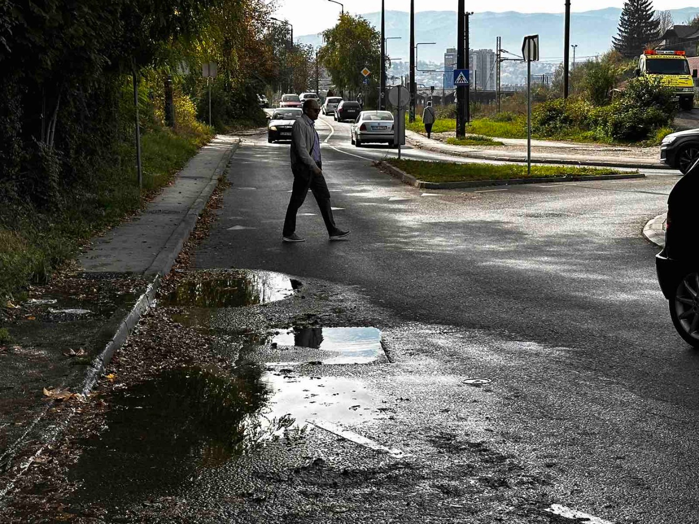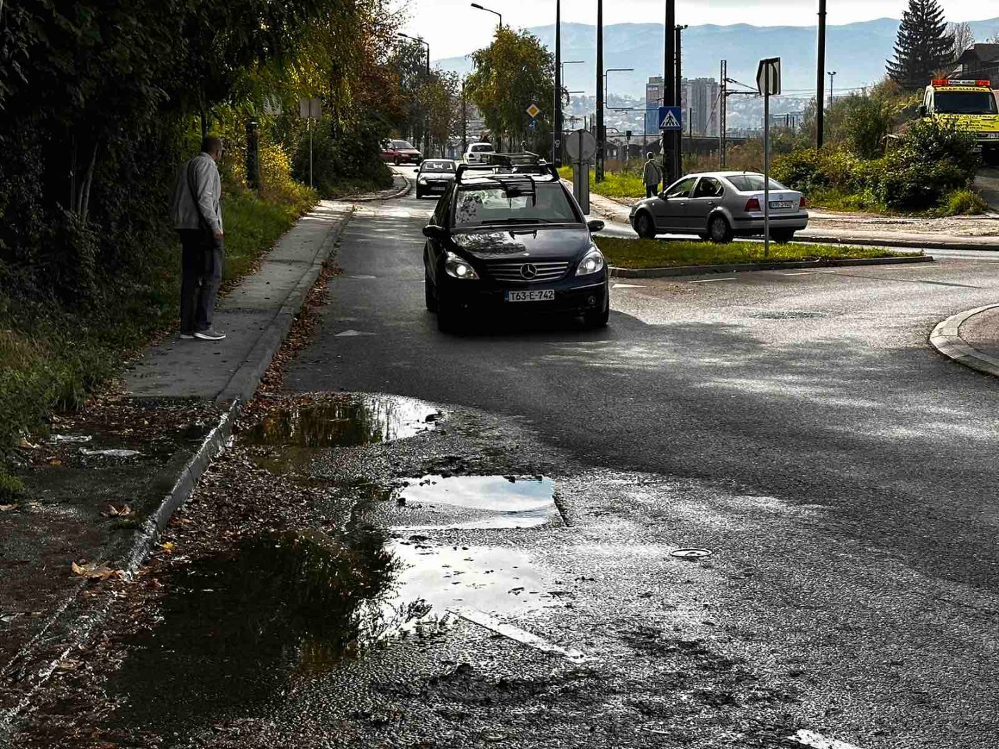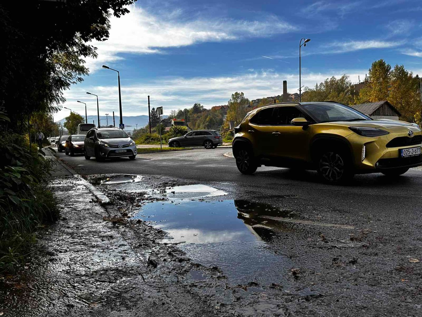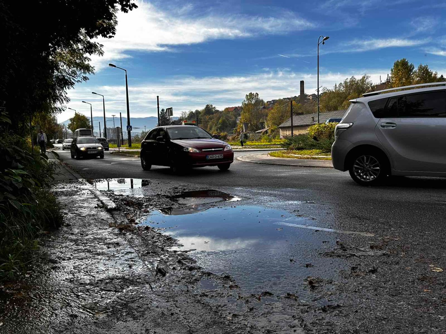 Curenje vode u kružnom toku u ulici Halida Kajtaza u Velešićima i dalje pravi problem pješacima i vozačima, te stvara ogromne gubitke vode u vodovodnoj mreži.