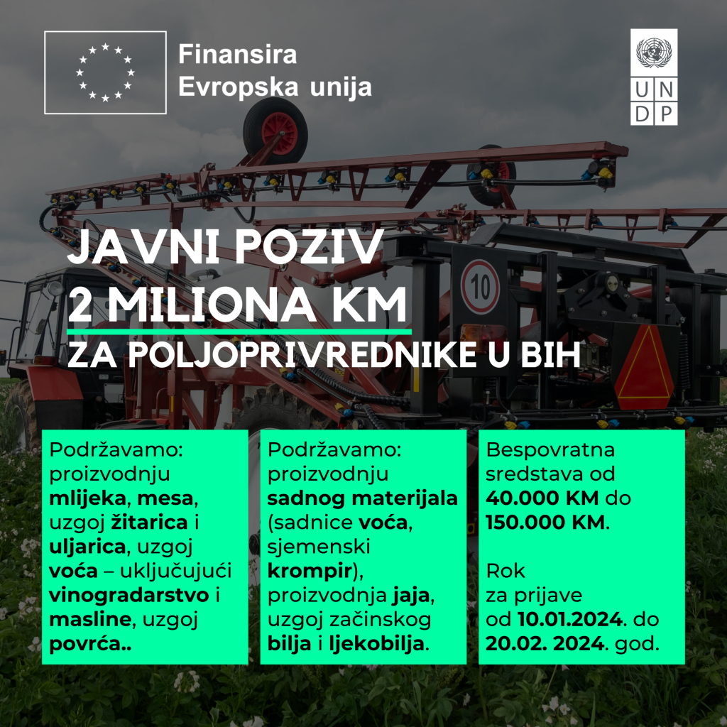 U okviru projekta EU4AGRI, koji finansira Evropska unija, 15. decembra objavljen je novi javni poziv vrijedan dva miliona KM za mjeru podrške investicijama u primarnu poljoprivrednu proizvodnju.