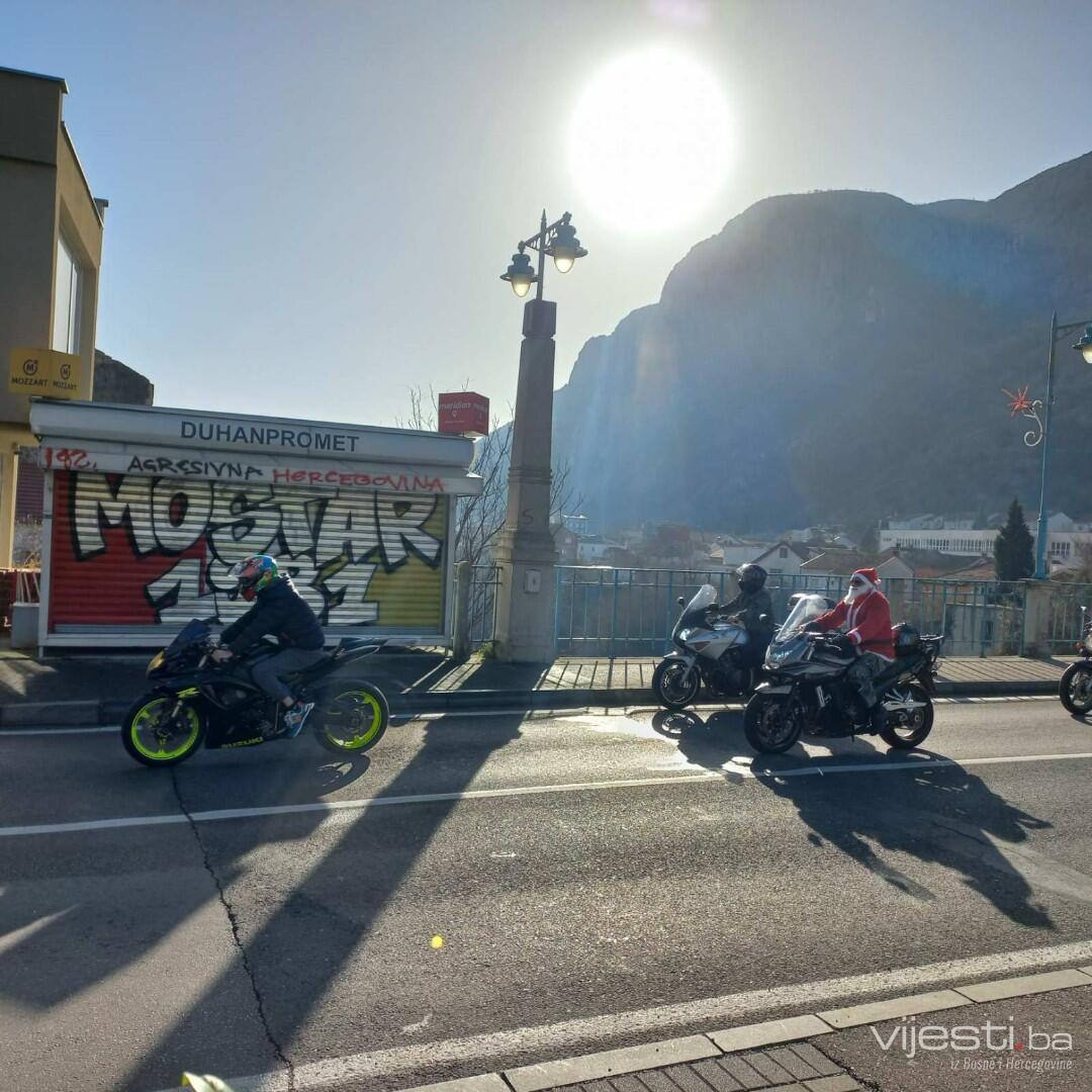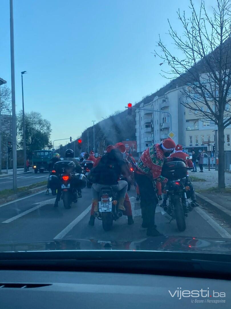 Grupa motociklista, obučenih u Djeda Mrazove provozala se Mostarom i Visokom.