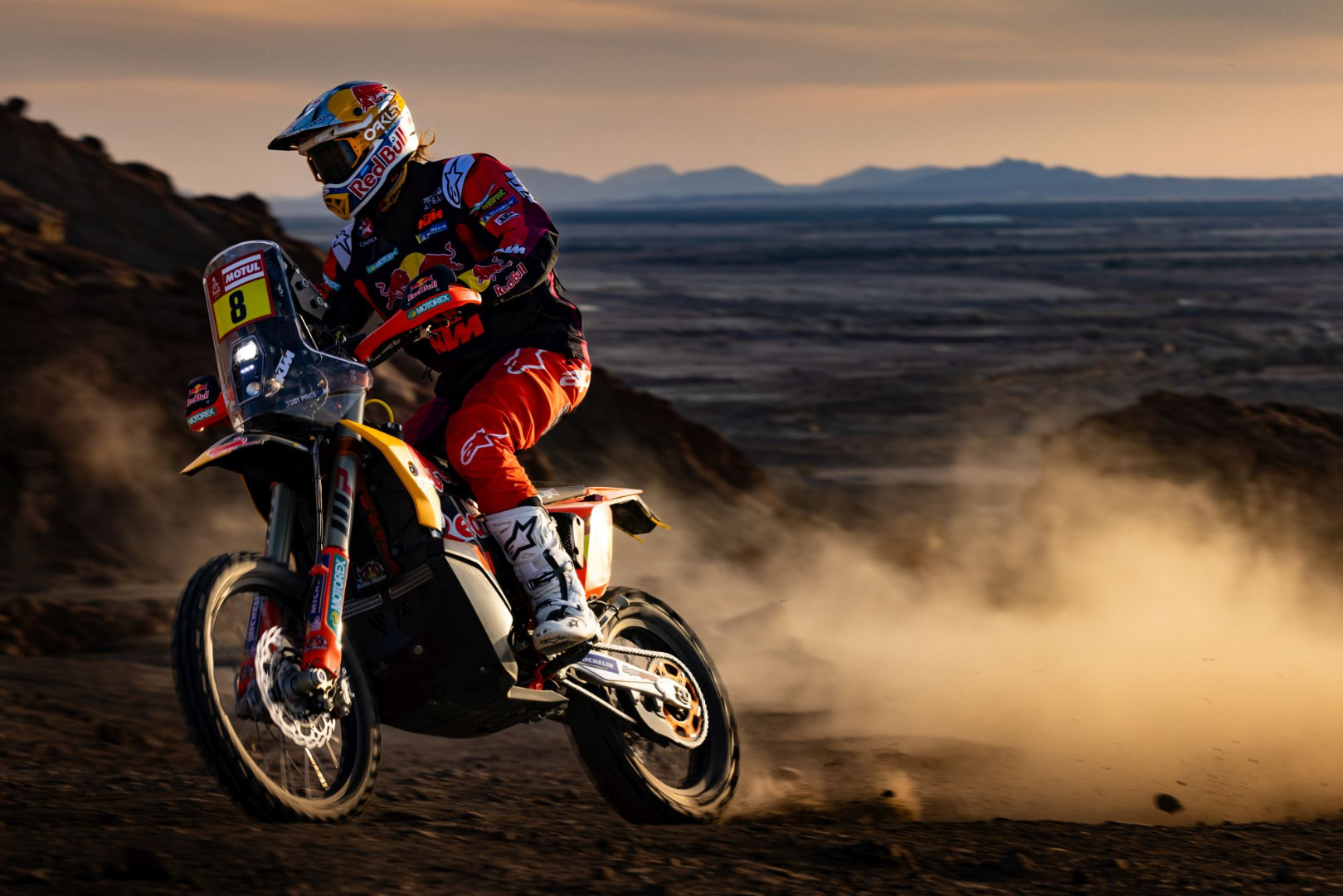 Gosti prve epizode showa "In the Dust" bili su šampioni Dakara Toby Price i Sam Sunderland. Oni se poznaju deset godina i tokom relija dijele isti kamper. Njihovo prijateljstvo je dio onoga što zapravo čini Dakar, uz takmičarski duh i međusobno poštovanje.