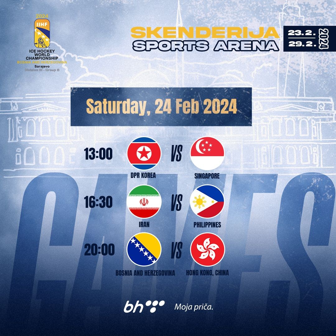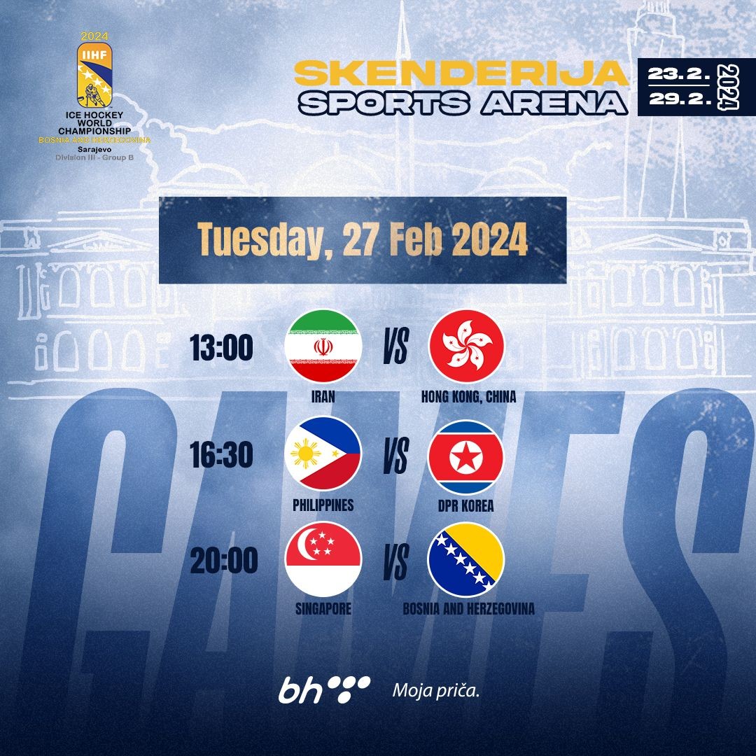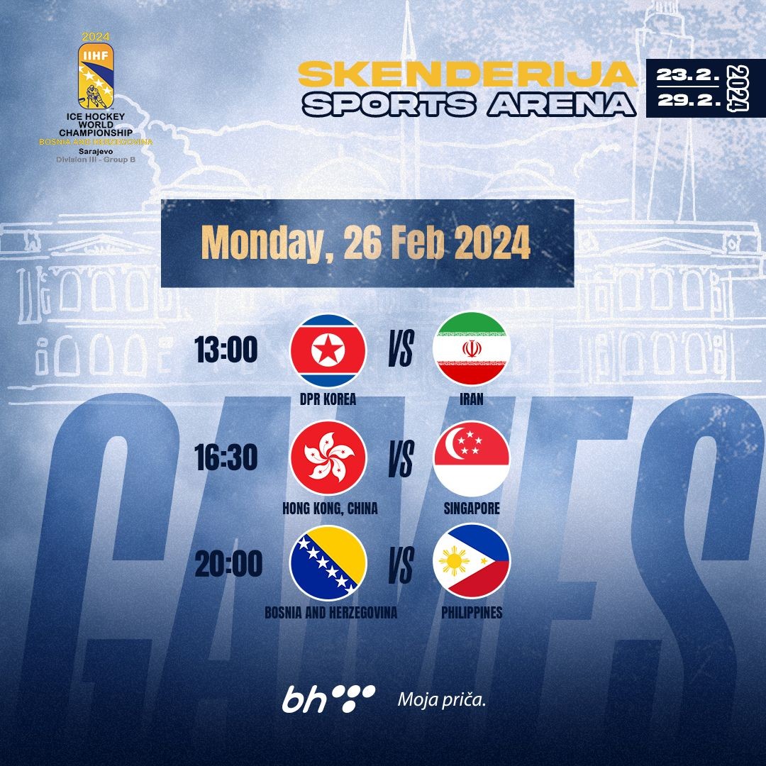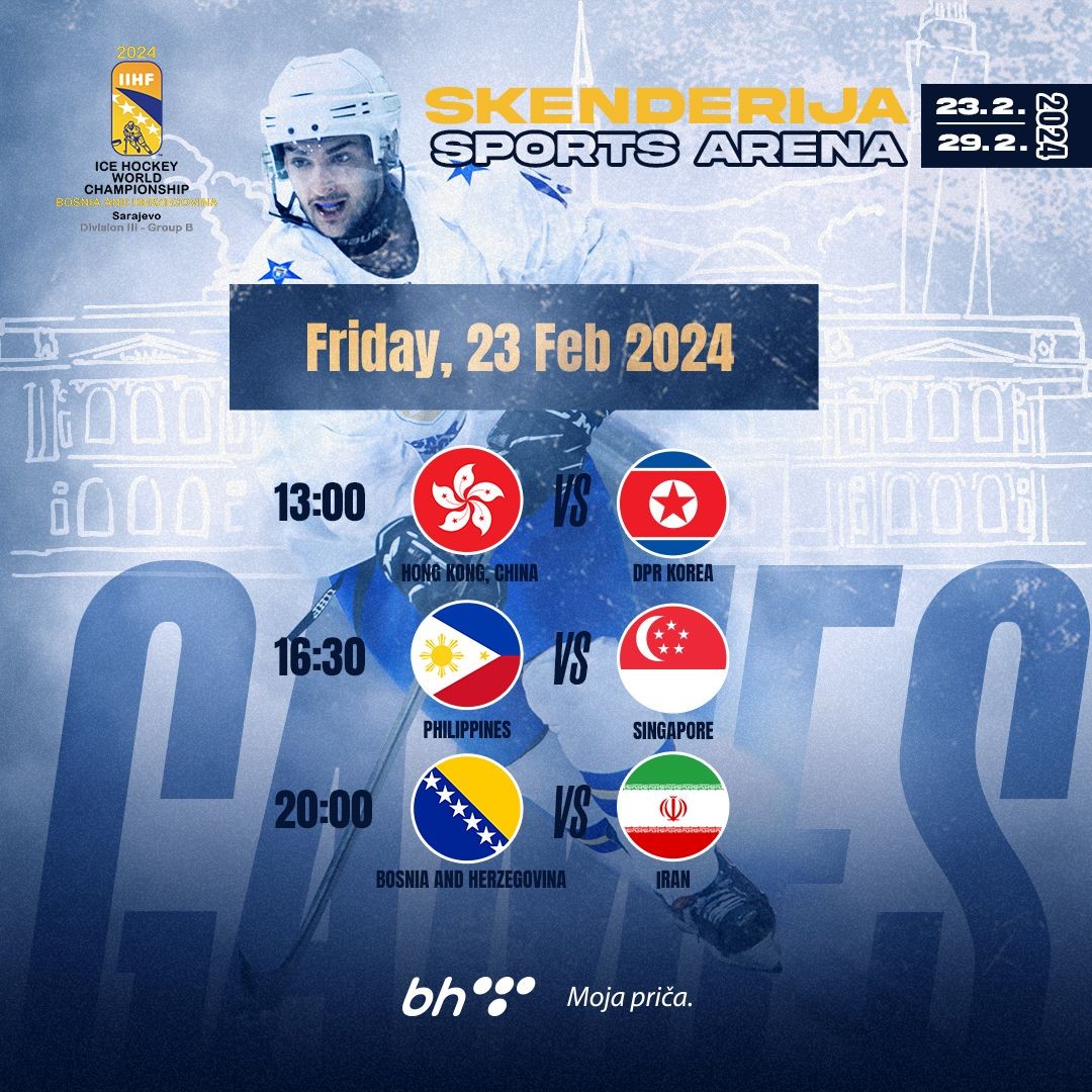 Ukupno će na prvenstvu biti odigrano 15 utakmica, a naši hokejaši će prvi susret odigrati 23. februara protiv Irana, a zatim protiv Kineskog Hong Konga (24. februara), te protiv Filipina (26. februara) i Singapura (27. februara). Prvenstvo će zatvoriti susret reprezentacija Bosne i Hercegovine i Sjeverne Koreje 29. februara. Sve utakmice naših hokejaša igraju se od 20 sati.