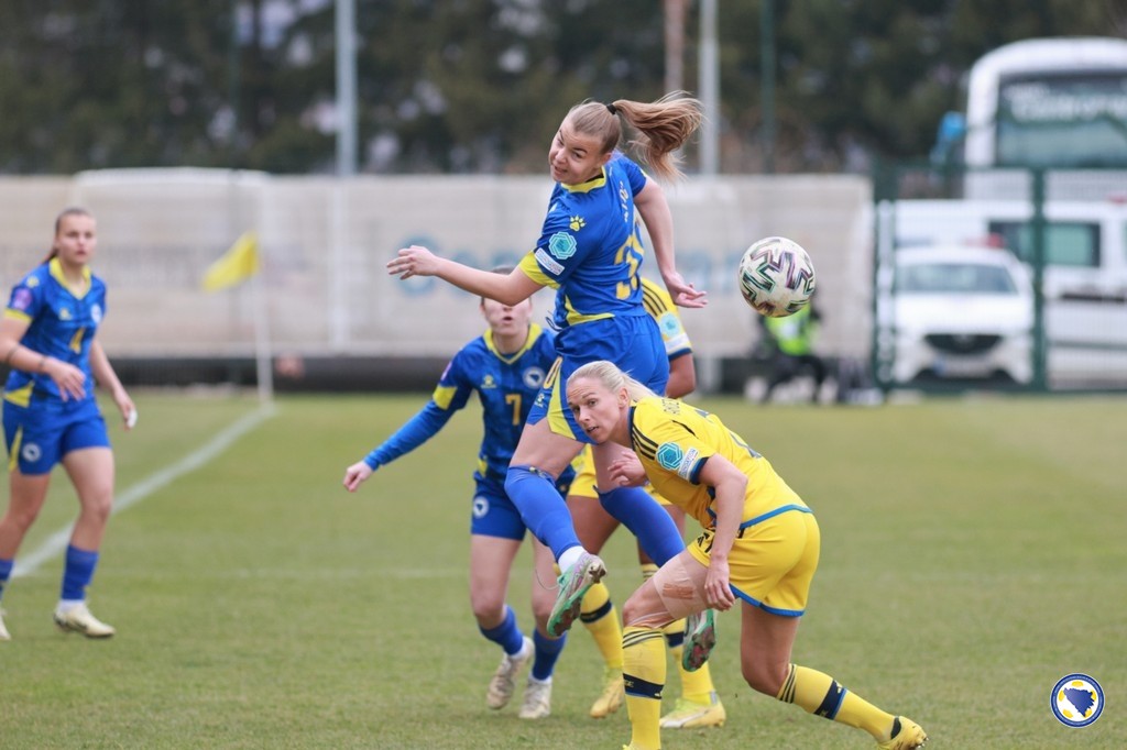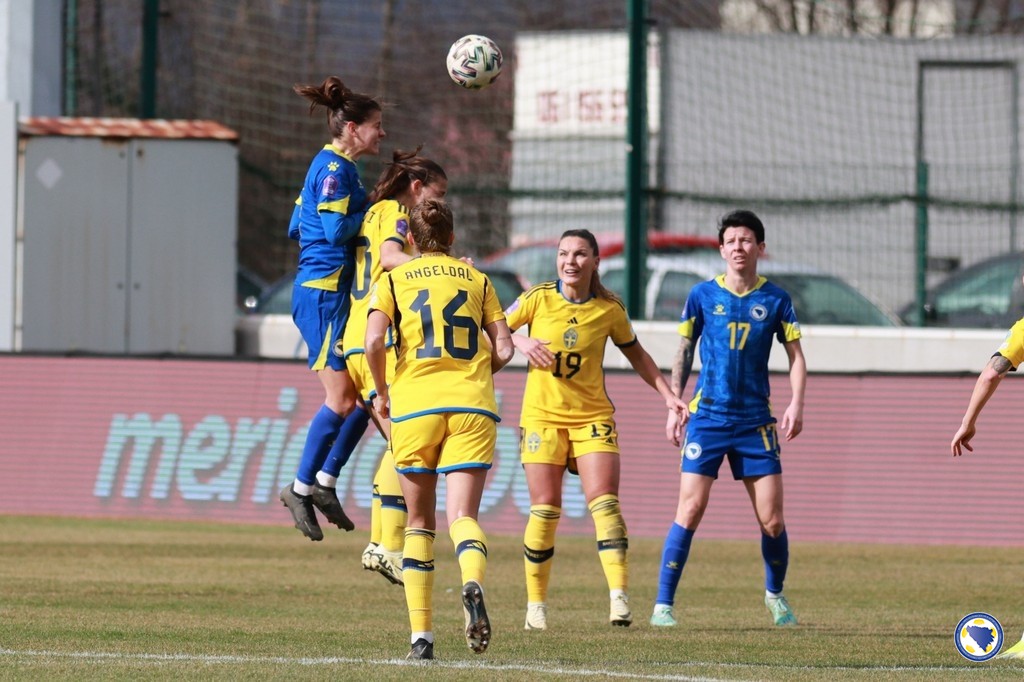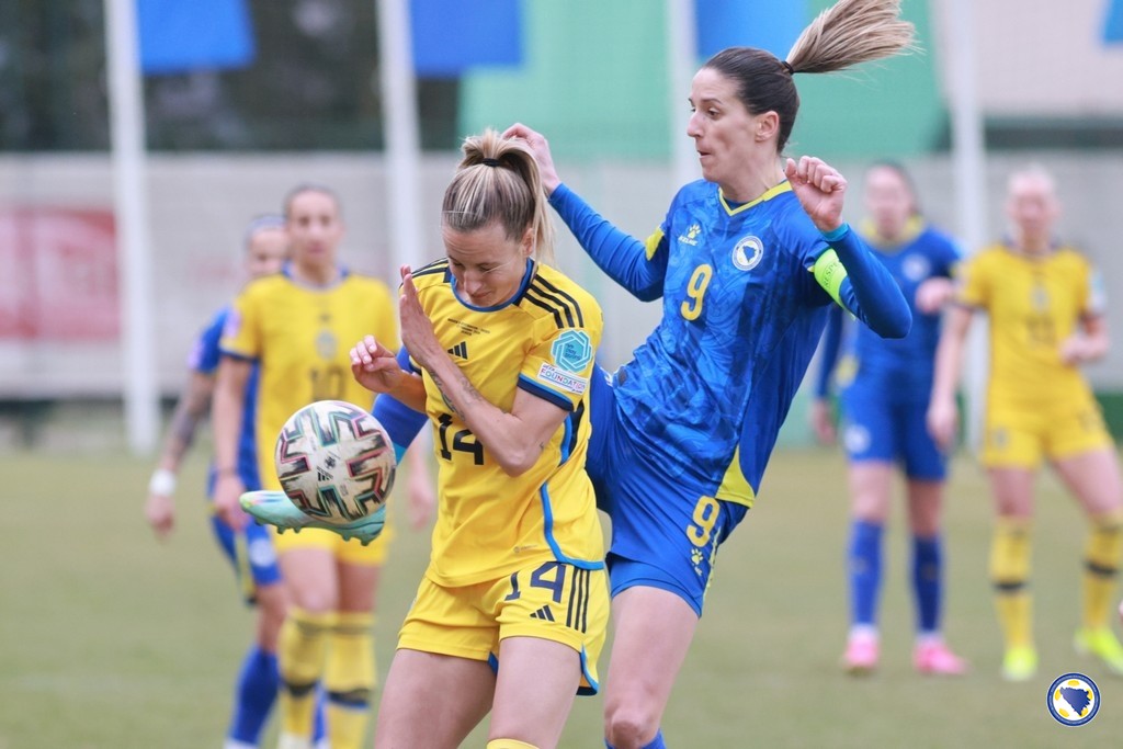 Ženska „A“ reprezentacija Bosne i Hercegovine poražena je danas u Zenici od Švedske sa 0:5 u prvom susretu baraža za UEFA A Ligu nacija.