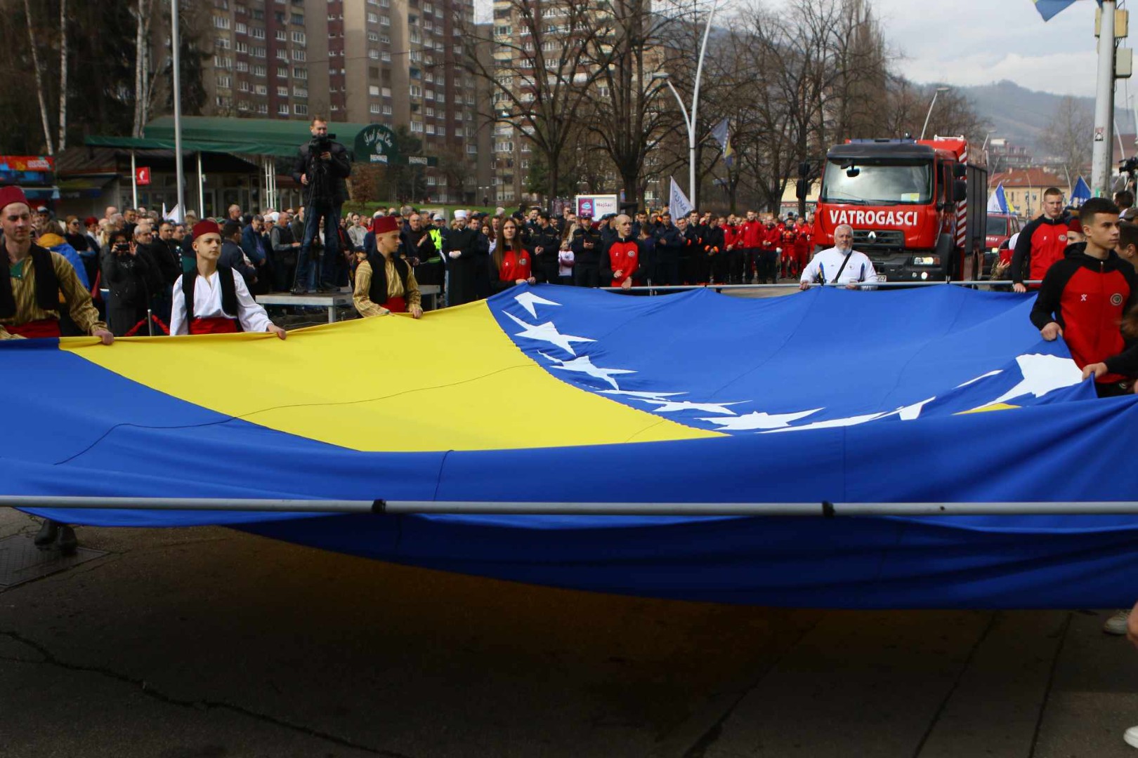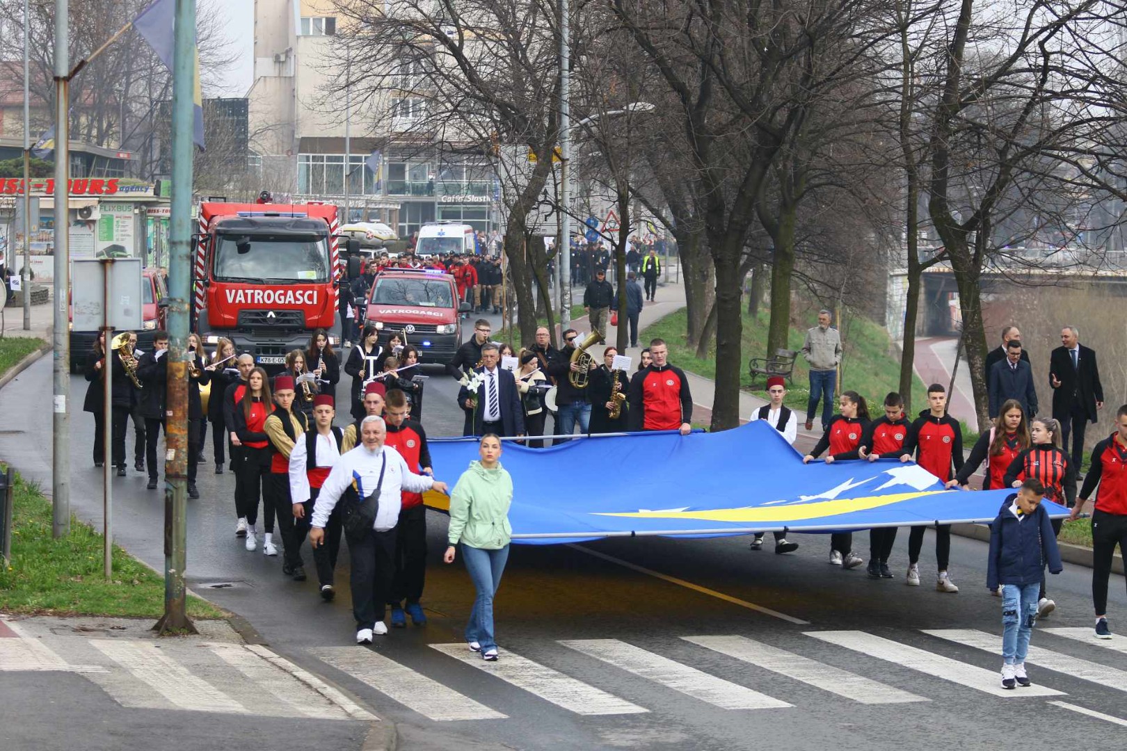 Uz zvukove bubnjeva i podignute zastave, kolona Zeničana je, uz pratnju policijske patrole i vatrogasaca prodefilirala gradom u centralnoj Bosni.
