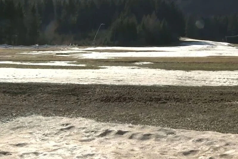 Na Kranjskoj Gori je 7 stepeni i pada kiša, a očekuje se da se temperature popne i do 10 stepeni. Naravno, u takvim uvjetima nema nimalo prirodnog snijega, što se u ovom dijelu Slovenije ne pamti tokom zime.