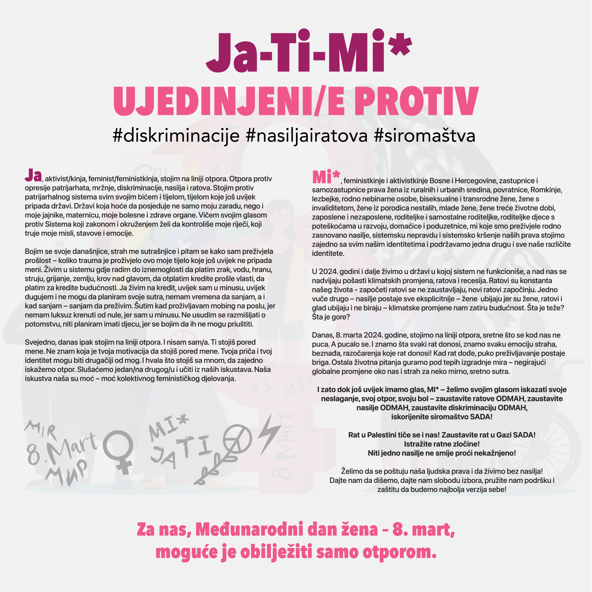 Aktivisti i aktivistkinje za ženska prava organizuju aktivistički marš sutra, 8. marta 2024. godine, a povodom Međunarodnog dana žena.