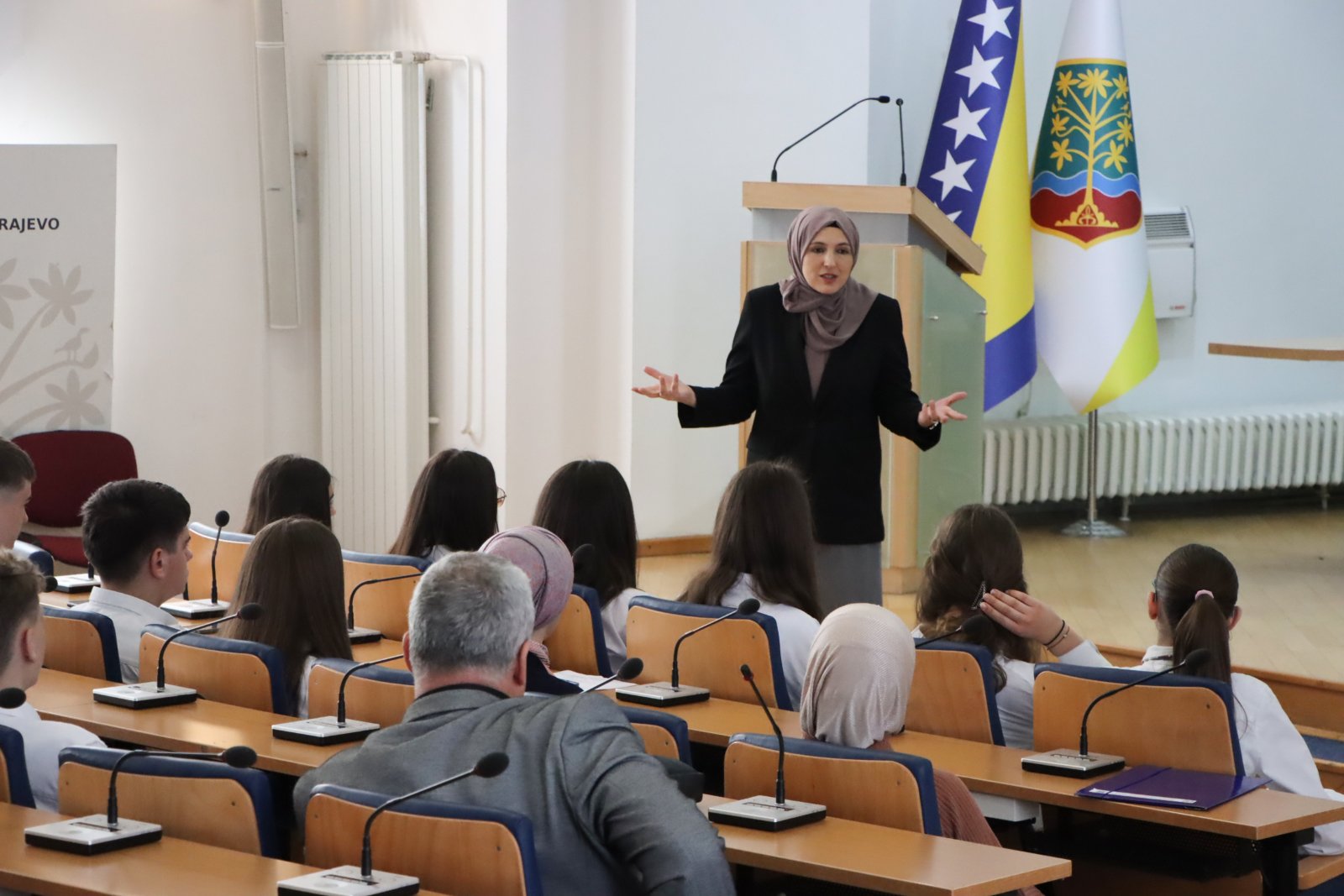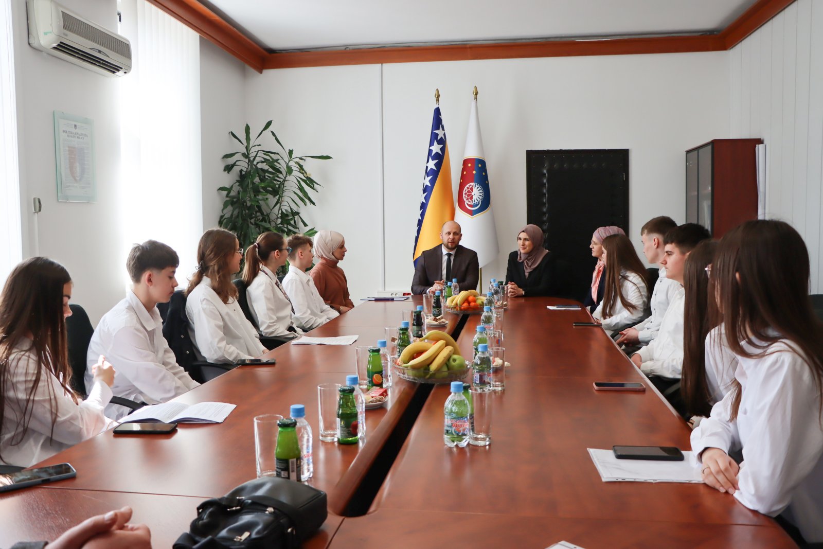 "Zakonodavna vlast kreira zakone, izvršna izvršava programe rada u skladu sa zakonima. Cilj mi je bio da vidite mjesto na kome radimo. To nije palača, već radni, kancelarijski prostor. Ovo je ustvari vaša fabrika u kojoj nastaju svi vaši ishodi, pohodi, izleti, nastavni planovi i programi, utakmice, turniri, odavde sve kreće i ovdje se sve zgotovi. Naravno, taj proces podržava veliki broj ljudi, bilo da rade u Ministarstvu ili u Institutu za razvoj preduniverzitetskog obrazovanja. Onda, kad mi to pustimo do škola, tek kreće pravi posao. Potrebno je sve navedeno, uz pomoć prosvjetnih radnika staviti u pogon, pokrenuti, učiniti dostupnim učenicima", izjavila je resorna ministrica Hota-Muminović, izražavajući uvjerenje da će u budućnosti vidjeti neke od posjetitelja u ulogama nositelja značajnih, pozitivnih promjena u našem društvu.