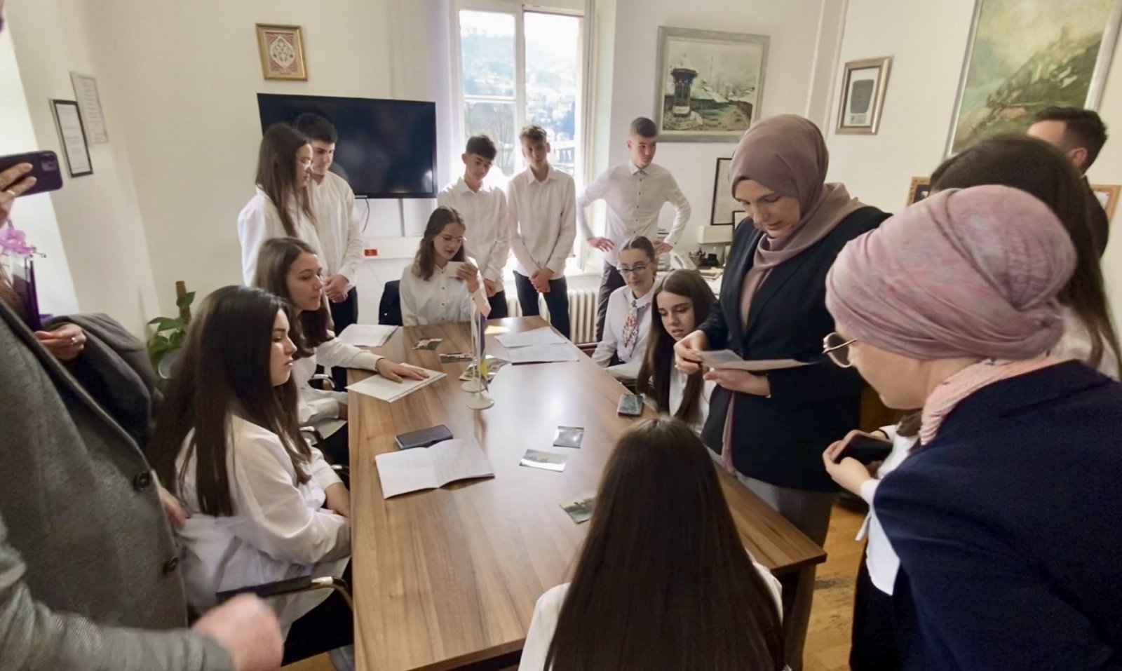 U okviru projekta „Političar na jedan dan - upoznajemo ustavno i zakonodavno uređenje naše domovine“, predsjedavajući Skupštine Elvedin Okerić i ministrica za odgoj i obrazovanje Kantona Sarajevo Naida Hota-Muminović ugostili su 12 učenika Osnovne škole „Halimi ef. Šarić“ Tarčin, koji su stigli u pratnji voditeljice projekta, pomoćnika direktora i asistenta u nastavi.