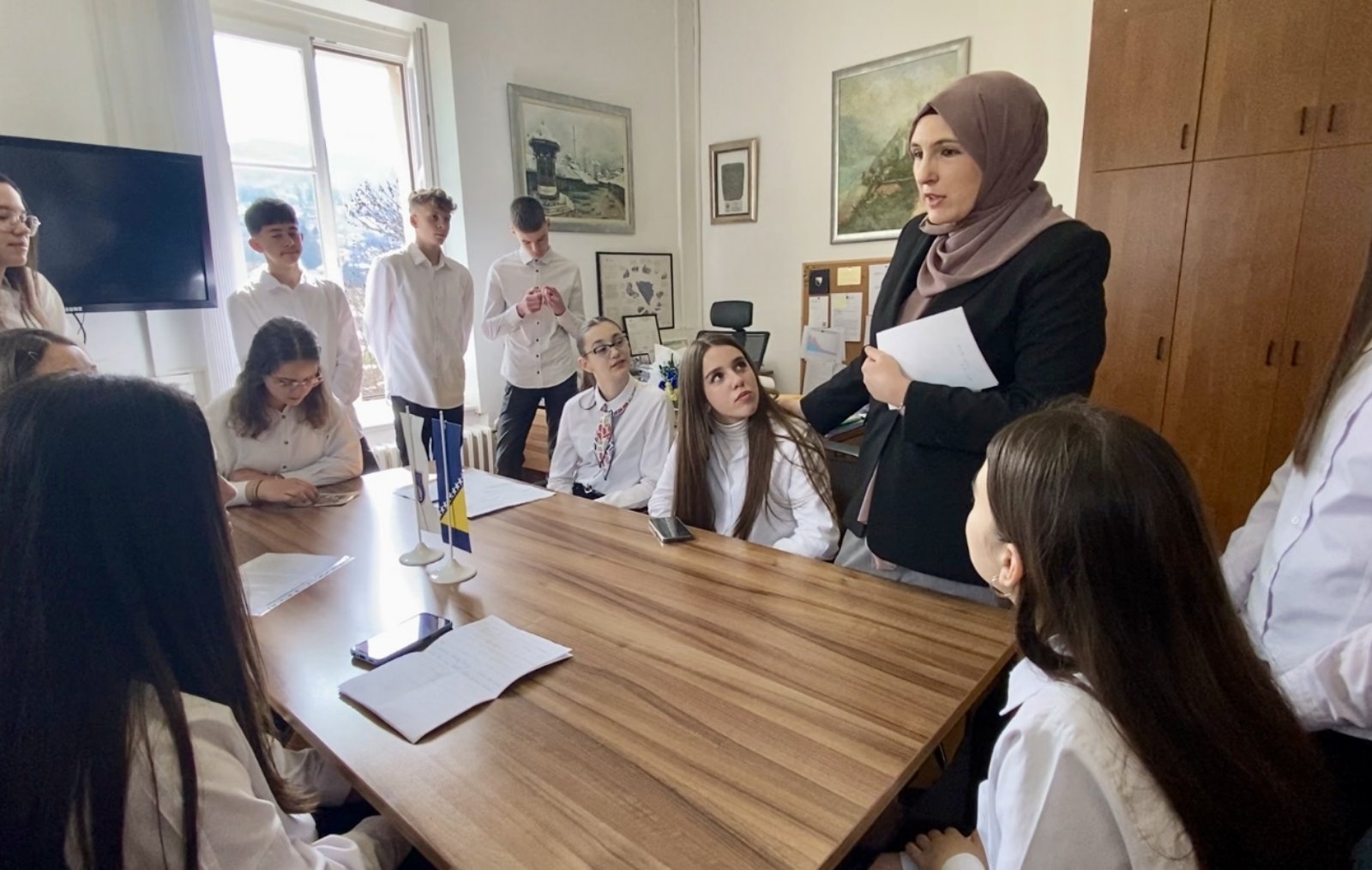 Učenici su posjetili i skupštinsku salu, gdje su vodili konstruktivan razgovor o mogućnostima unapređenja i inicijativama vezanim za njihovu školu.