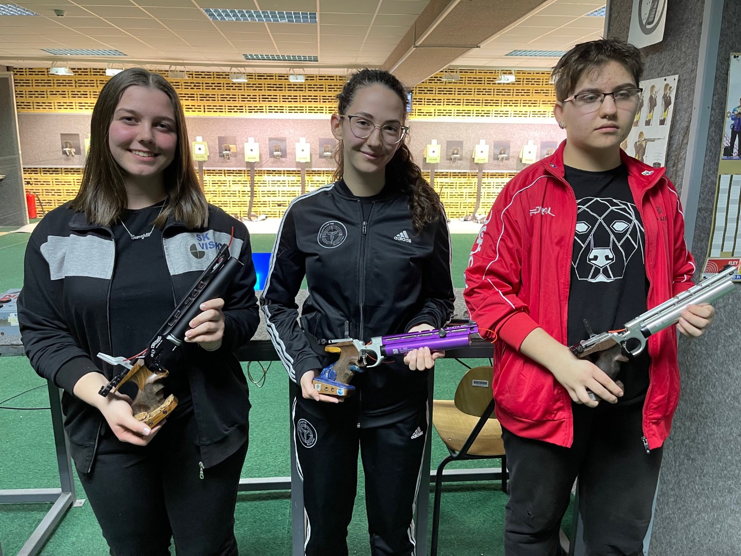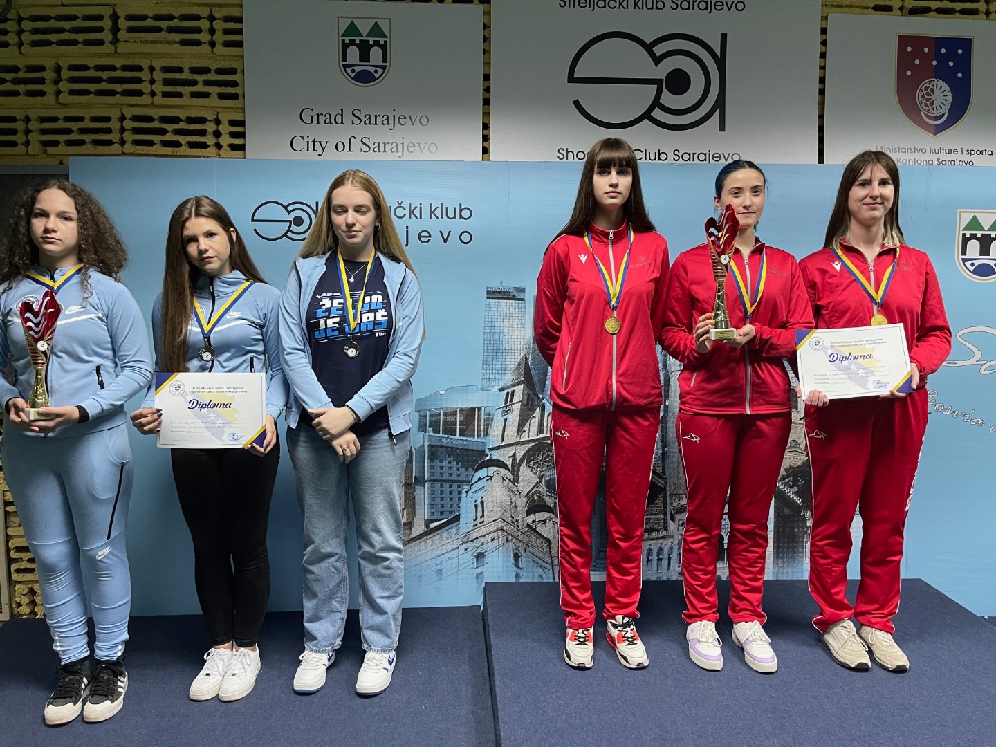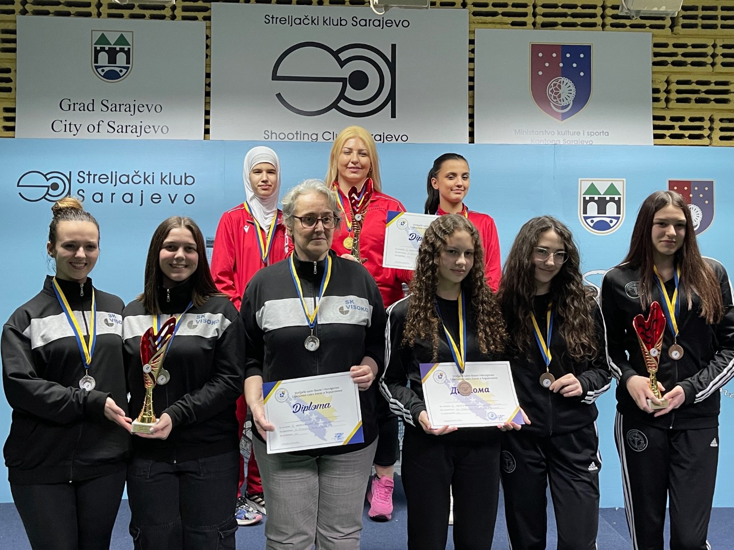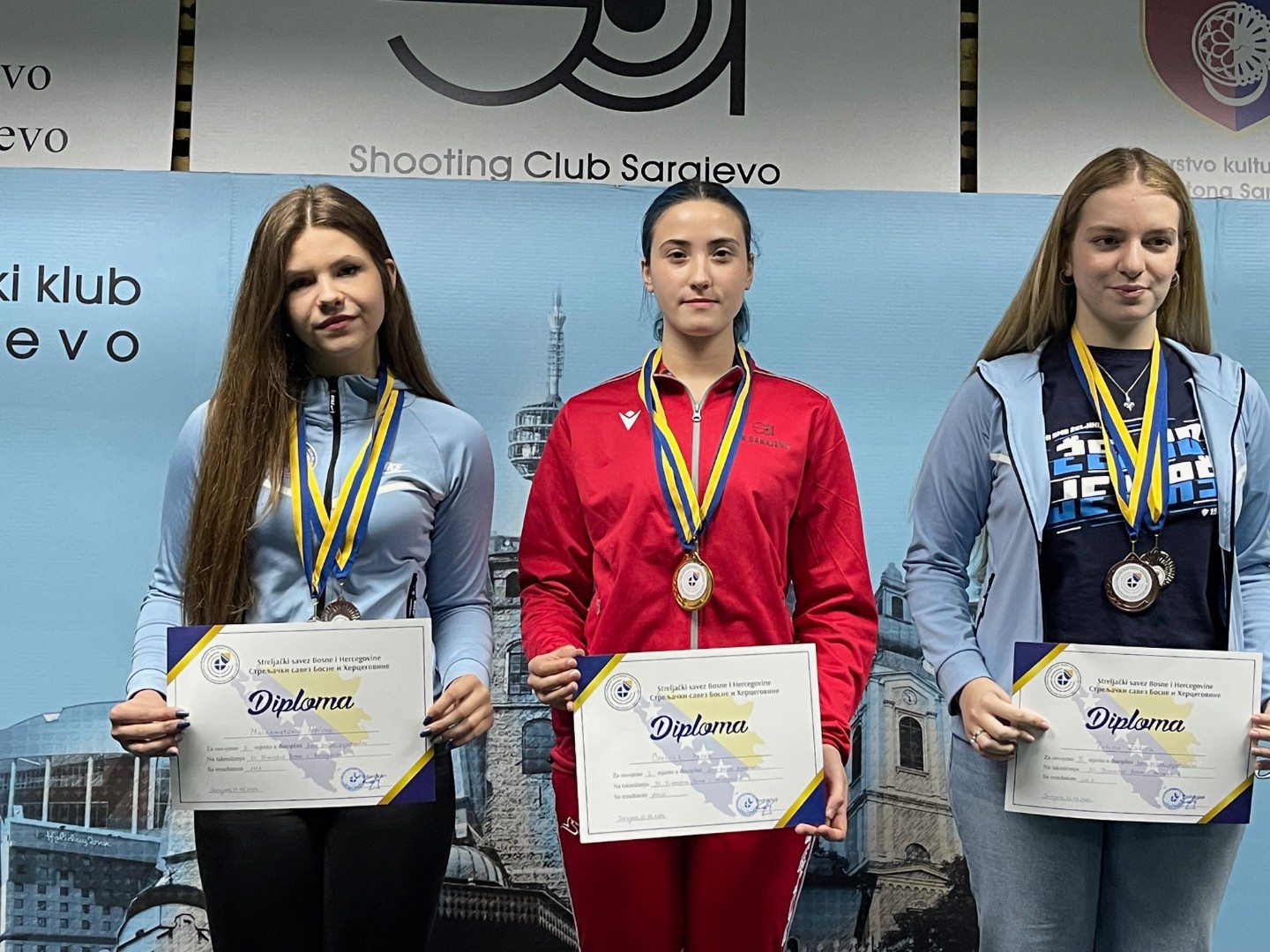 Takmičarke Streljačkog kluba Sarajevo u disciplini zračni pištolj odrbarnile titulu Prvakinja BiH, a u sastavu ekipe su nastupile Hana Tahirović, Sabrina Drinjaković i Jelena Antonić. Pobjednik se nije znao do zadnjeg ispaljenog hitca. Takmičarke SK Sarajevo su za samo 5 krugova bile bolje od takmičarki SK Visoko koje su imale 1589 krugova. Treće mjesto je pripalo takmičarkama SK TRB iz Bijeljine koje su pogodile samo 4 kruga manje od takmičarki SK Visoko.