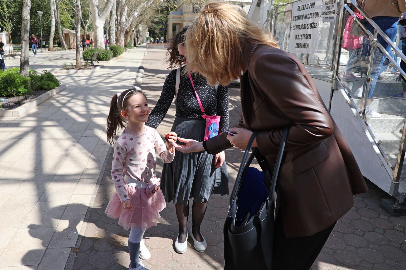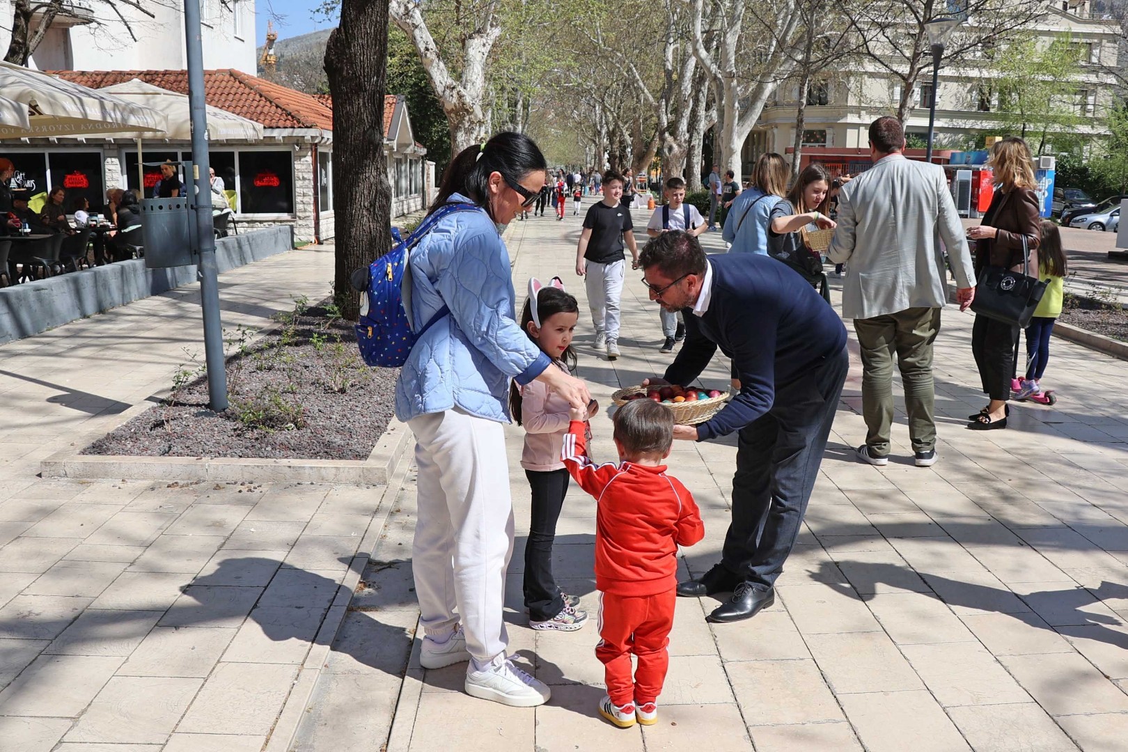 Nakon svečanog otvaranja panoramskog točka gradonačelnik Kordić je najmlađim stanovnicima Mostara dijelio uskrsna jaja.