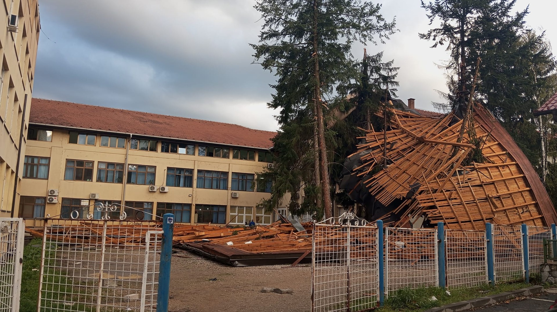 Olujni vjetar je uspio odnijeti kompletan krov sa drvenom konstrukcijom. Kada je pao na tlo, iza zgrade škole, uništio je dva parkirana automobila. Na svu sreću nije bilo povrijeđenih osoba.