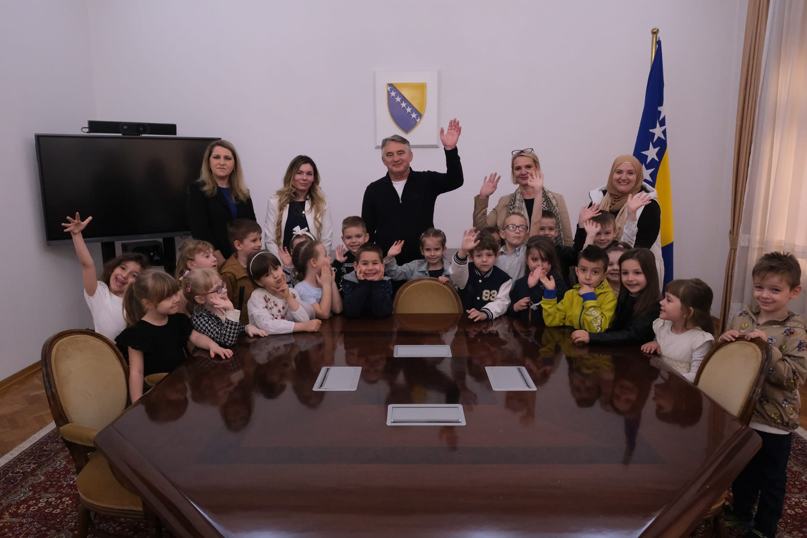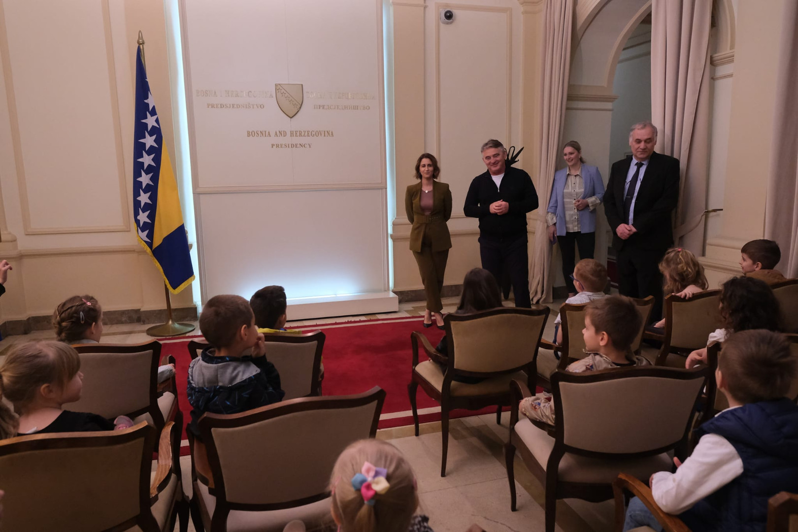 Domaćin posjete bio je član Predsjedništva Željko Komšić, koji je rado odgovarao na pitanja znatiželjnih mališana. Posebno su bila interesantna dječija pitanja o tome kako se postaje predsjednik, koje su obaveze predsjednika…