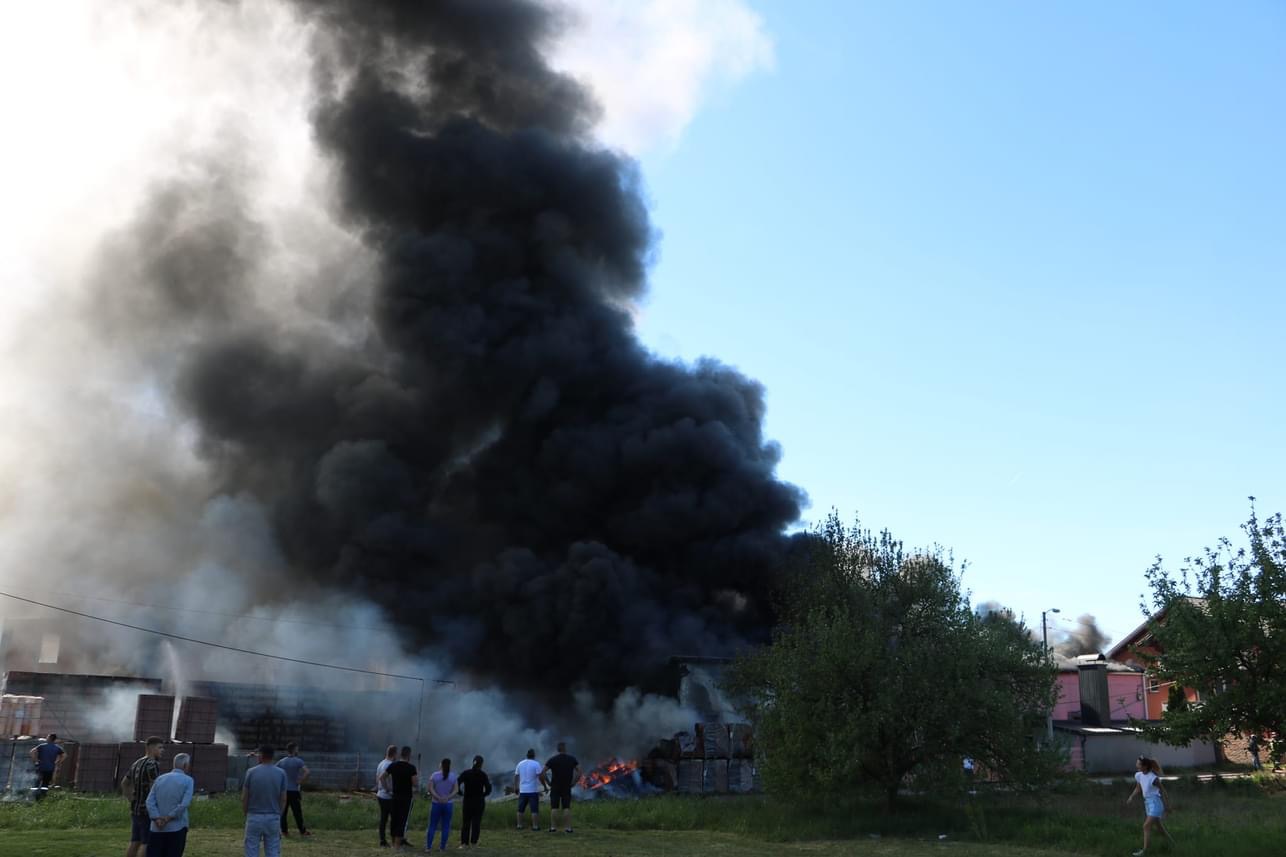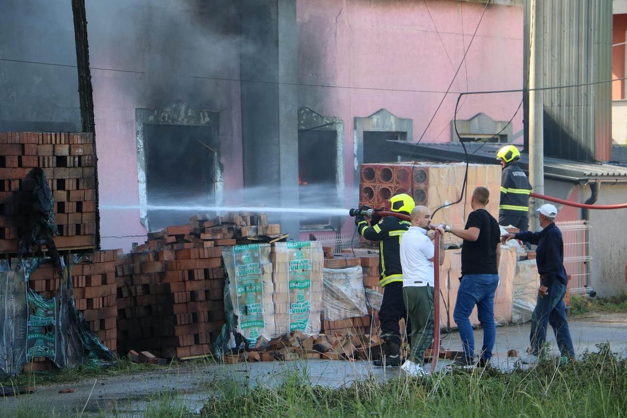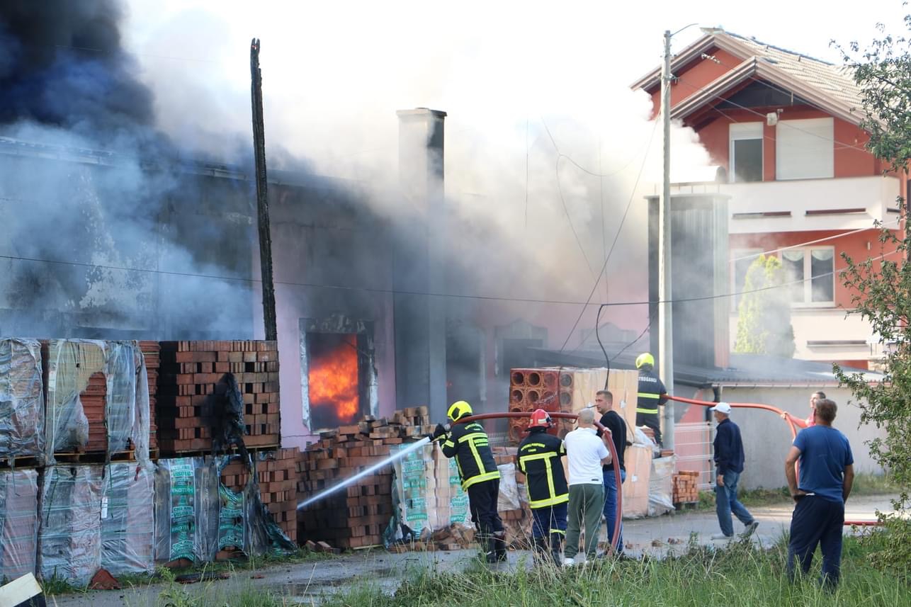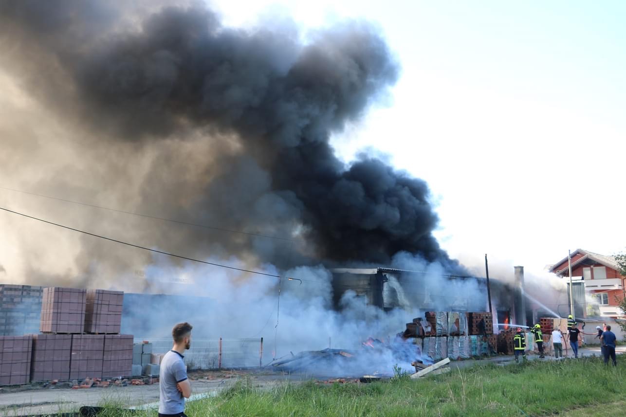 Veliki požar izbio je danas popodne na stovarištu građevinskog materijala u Srebreniku, gdje se mnogobrojni vatrogasci još bore s vatrom.