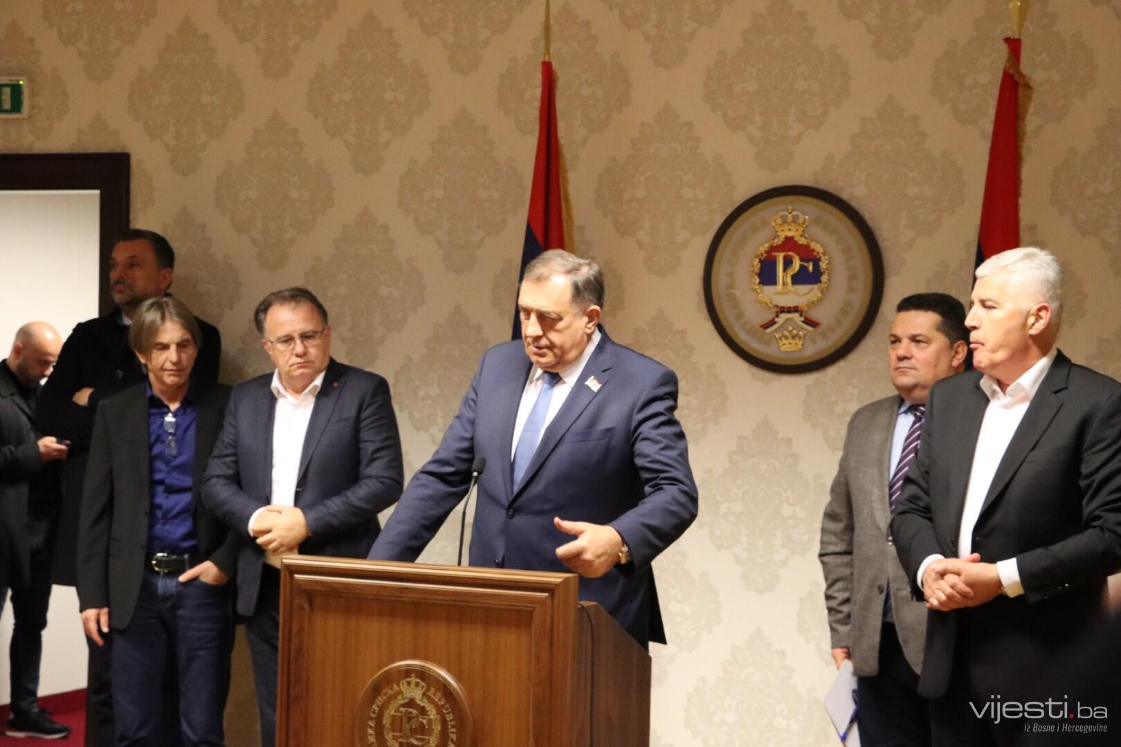 Predsjednik Republike Srpske i SNSD-a Milorad Dodik danas je u Istočnom Sarajevu održao sastanak sa koalicionim partnerima na državnom niovu, predstavnicima Trojke, predsjednikom HDZ-a BiH Draganom Čovićem i predsjednikom Narodne skupštine RS Nenadom Stevandićem, nakon kojeg je većina aktera zaključila da Izborni zakon treba uputiti u parlamentarnu proceduru s ciljem da se odblokira put BiH ka Evropskoj uniji odnosno izađe iz krize u koju su zapali nakon otvaranja pregovora sa EU.