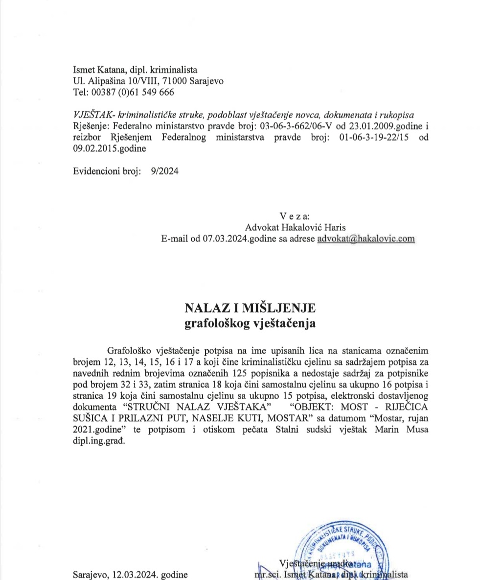 Tužilaštvo HNK bi trebalo provjeriti navode podnosioca prijave, te za početak angažovati vještaka koji će također uraditi vještačenje potpisa na pomenutoj peticiji mještana naselja Kuti.