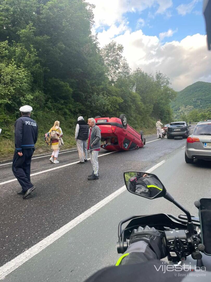 U saobraćajnoj nesreći je jedan automobil završio na krovu.