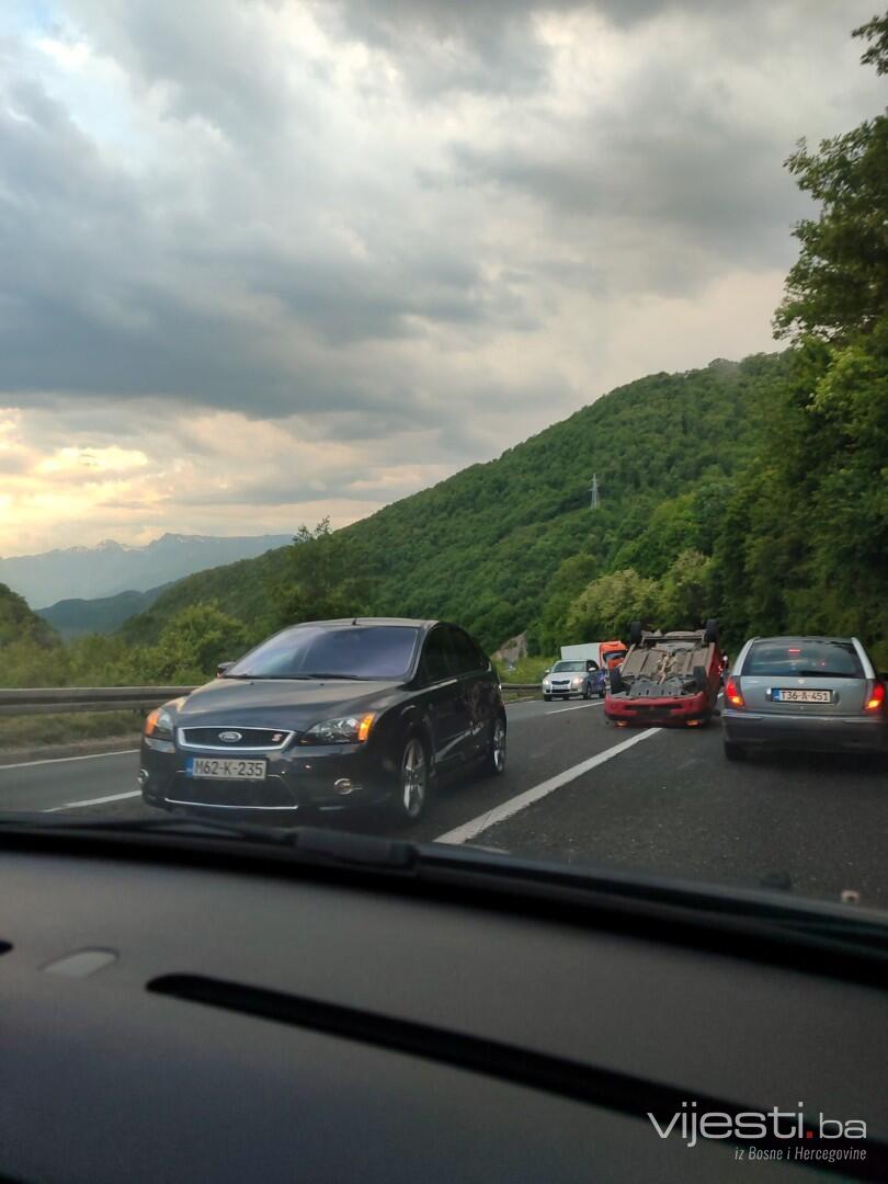Nakon što se kod Bradine, u blizni Konjica, desila saobraćajna nesreća u kojoj su učestvovala dva automobila, a u kojoj je jedan automobil završio na krovu, formirale su se velike gužve.