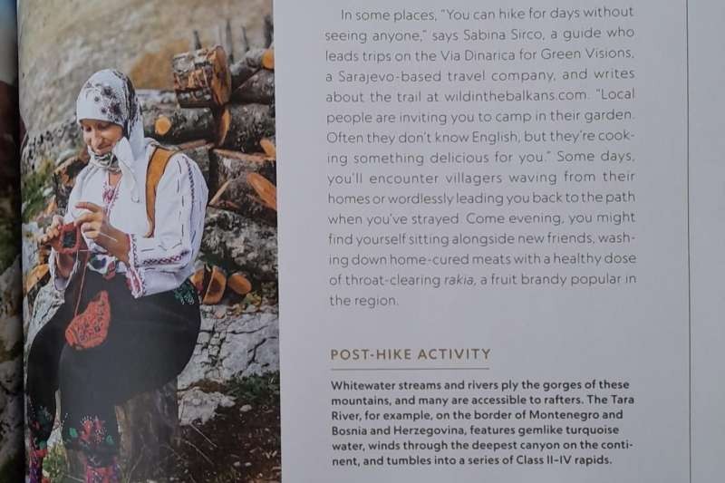 U tekstu se pominje i izjava vodiča Sabine Sirćo, koja navodi kako na nekim mjestima "možete pješačiti danima, a da nikoga ne vidite". Ona podvlači da "vas lokalni ljudi pozivaju da kampujete u njihovoj bašti. Često ne znaju engleski, ali vam spreme nešto ukusno."