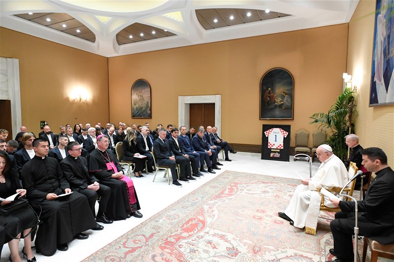 U dvorani Pavla VI u Vatikanu održana je privatna audijencija kod Svetog Oca, pape Franje, za hrvatsku fudbalsku reprezentaciju i delegaciju Hrvatskog nogometnog saveza, predvođenu predsjednikom Marijanom Kustićem.