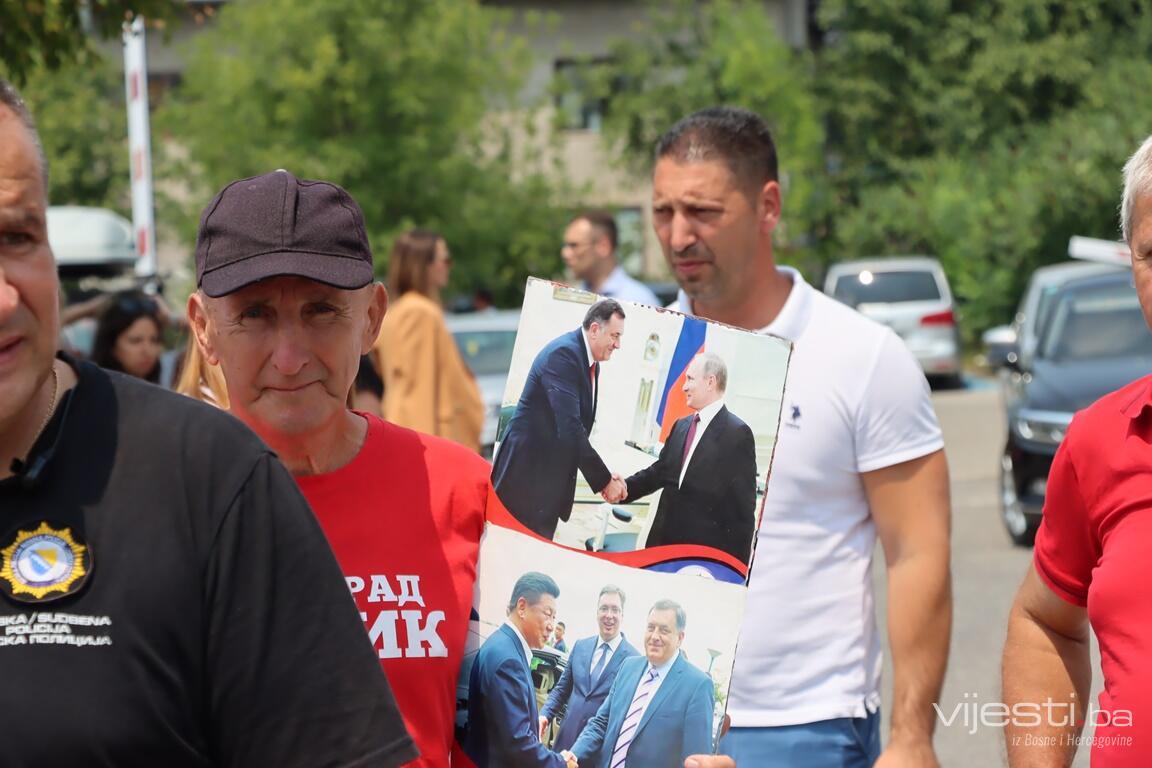 Okupljeni simpatizeri su nosili slike Milorad Dodika i predsjednika Rusije Vladimira Putina.