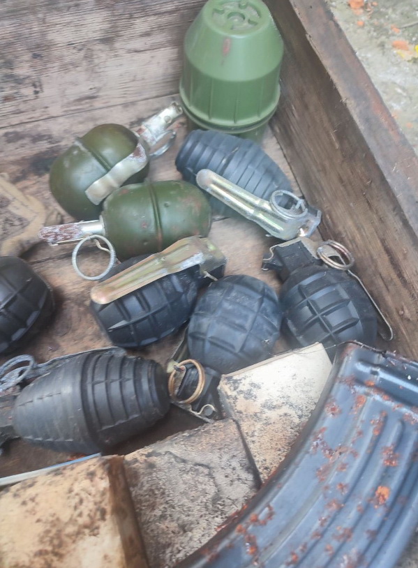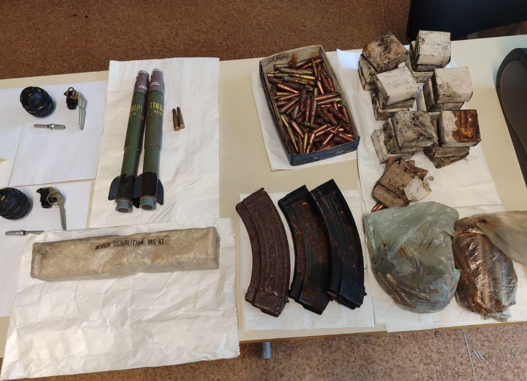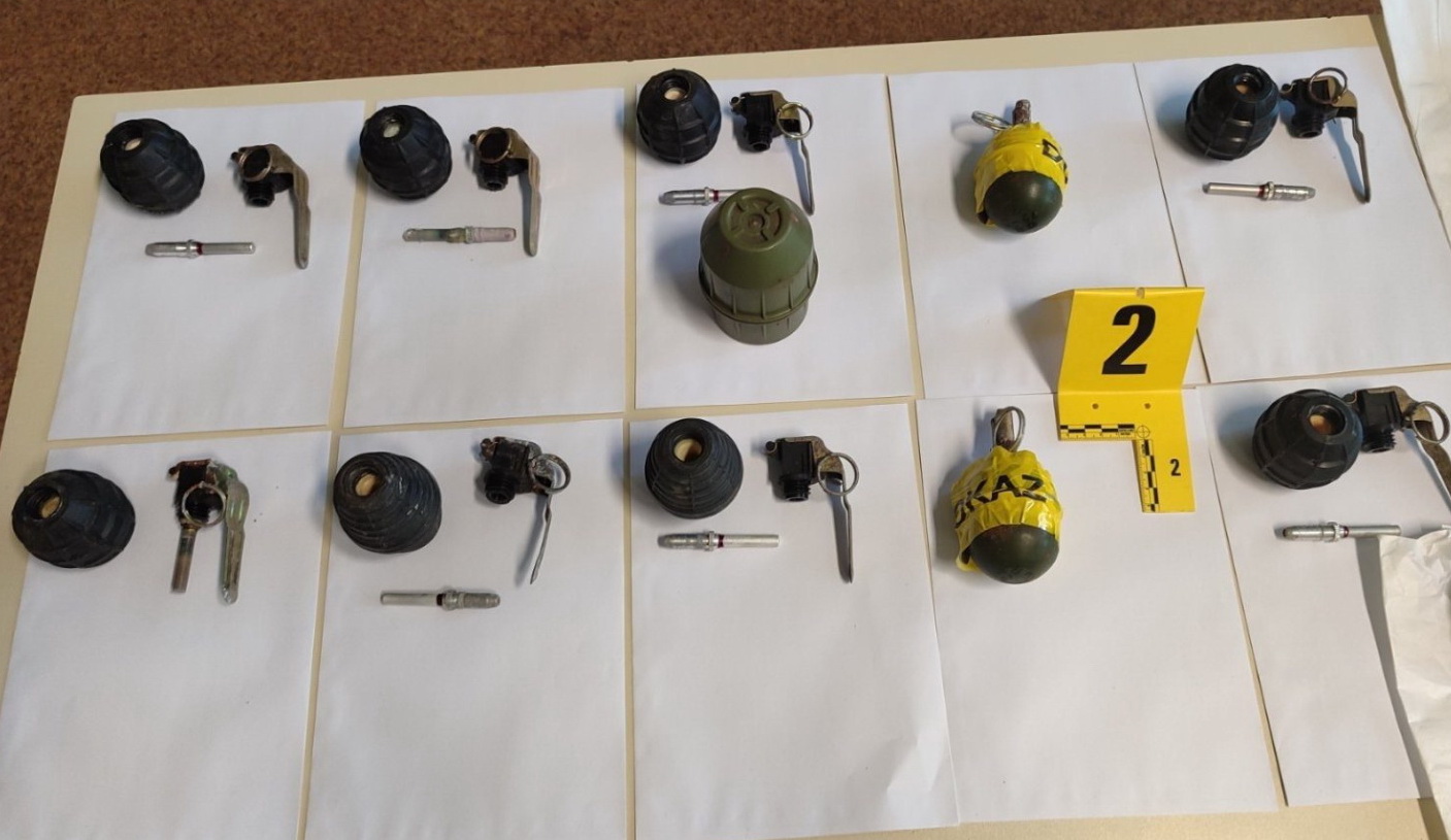 pištolj "Blow", startni pištolj "Ekol", improvizovana puška ručne izrade, deset ručnih bombi, tri okvira automatske puške, veća količina municije različitih kalibara (preko 700 komada), dva tromblonska metka, plastični eksploziv, određena količina materije koja svojim izgledom asocira na opojnu drogu i drugi predmeti koji se dovode u vezu sa izvršenjem krivičnih djela, a koji mogu poslužiti kao dokaz u kasnijem postupku.
