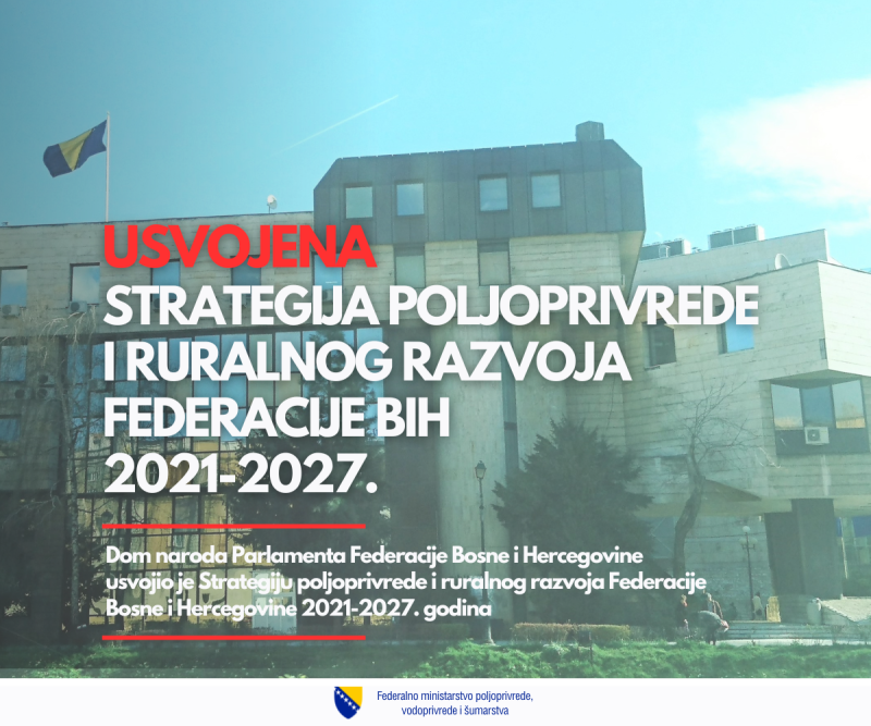 Strategija predstavlja važan korak prema održivom, produktivnom i konkurentnom poljoprivrednom sektoru i ruralnim područjima Federacije BiH - saopćeno je iz Federalnog ministarstva poljoprivrede, vodoprivrede i šumarstva.
