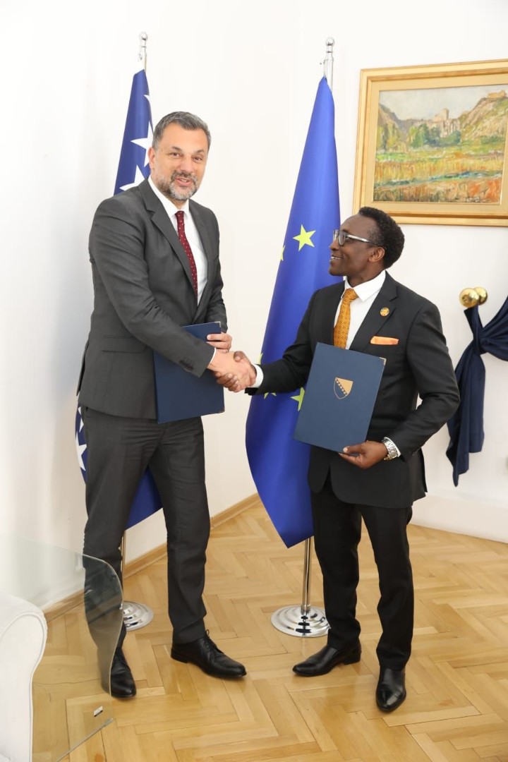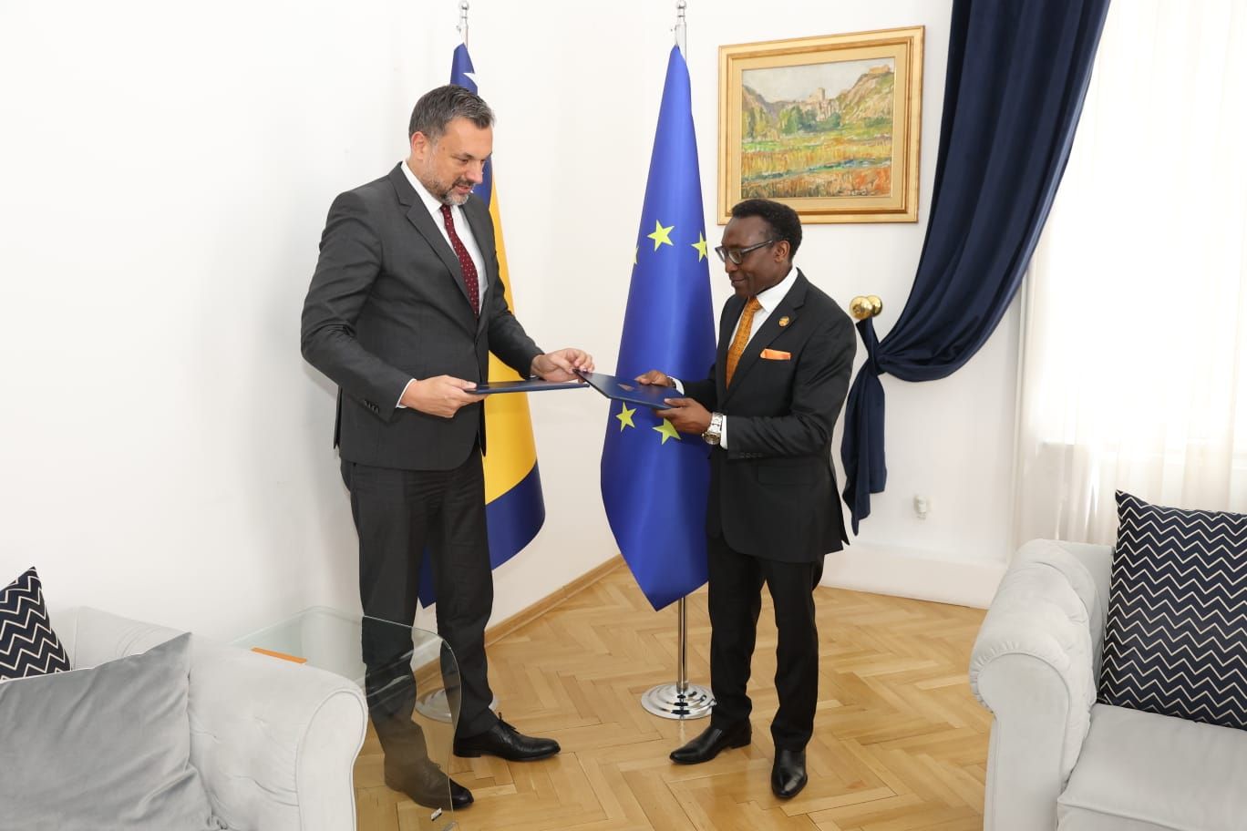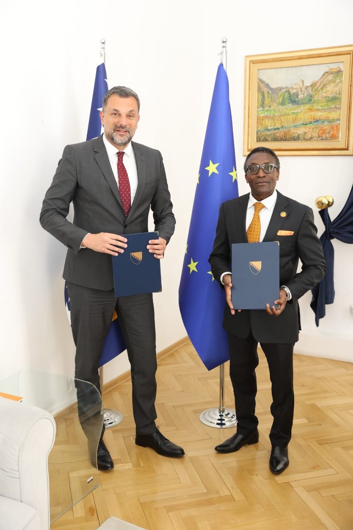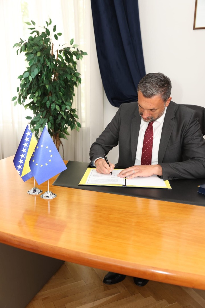 Ministar Konaković je danas potpisao Sporazum između Vijeća ministara Bosne i Hercegovine i Populacijskog fonda Ujedinjenih nacija, koji mu je predao predstavnik UNFPA za BiH Mosoti, a koji je ranije potpisala izvršna direktorica UNFPA sa sjedištem u Njujorku Natalija Kanem.