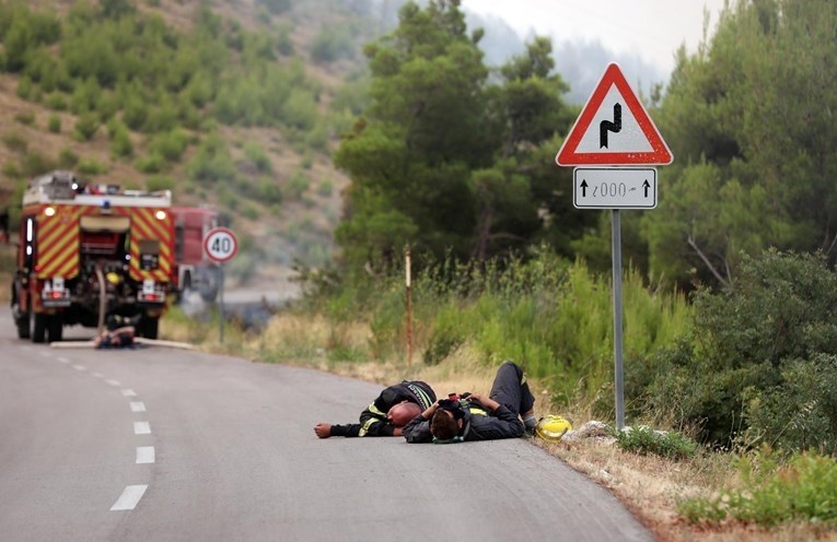 Umorni vatrogasci zaspali su na cesti kod Tučepa nakon što su se čitavu noć borili s velikim požarom na tom području. Emotivan prizor snimio je fotograf Pixsella.