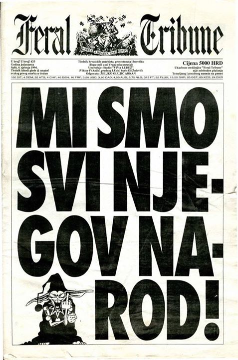 Izložba prikazuje i jednu od naslovnica Feral Tribune-a, koji je bio jedan od najpoznatijih nezavisnih antiratnih i antinacionalističkih medija u Hrvatskoj. Mladi novinari Viktor Ivančić, Predrag Lucić i Boris Dežulović („Viva Ludež“) pokrenuli su ga 1984. godine kao satirični dodatak Nedjeljnoj Dalmaciji. Nakon što je Slobodnu Dalmaciju preuzeo režimu blizak tajkun Miroslav Kutle, feralovci su 1993. godine pokrenuli Feral Tribune kao samostalni satirični nedeljnik koji je stekao svetsku reputaciju hrabrog medija koji se suprotstavlja nacionalizmu, korupciji i političkim manipulacijama režima Franje Tuđmana.