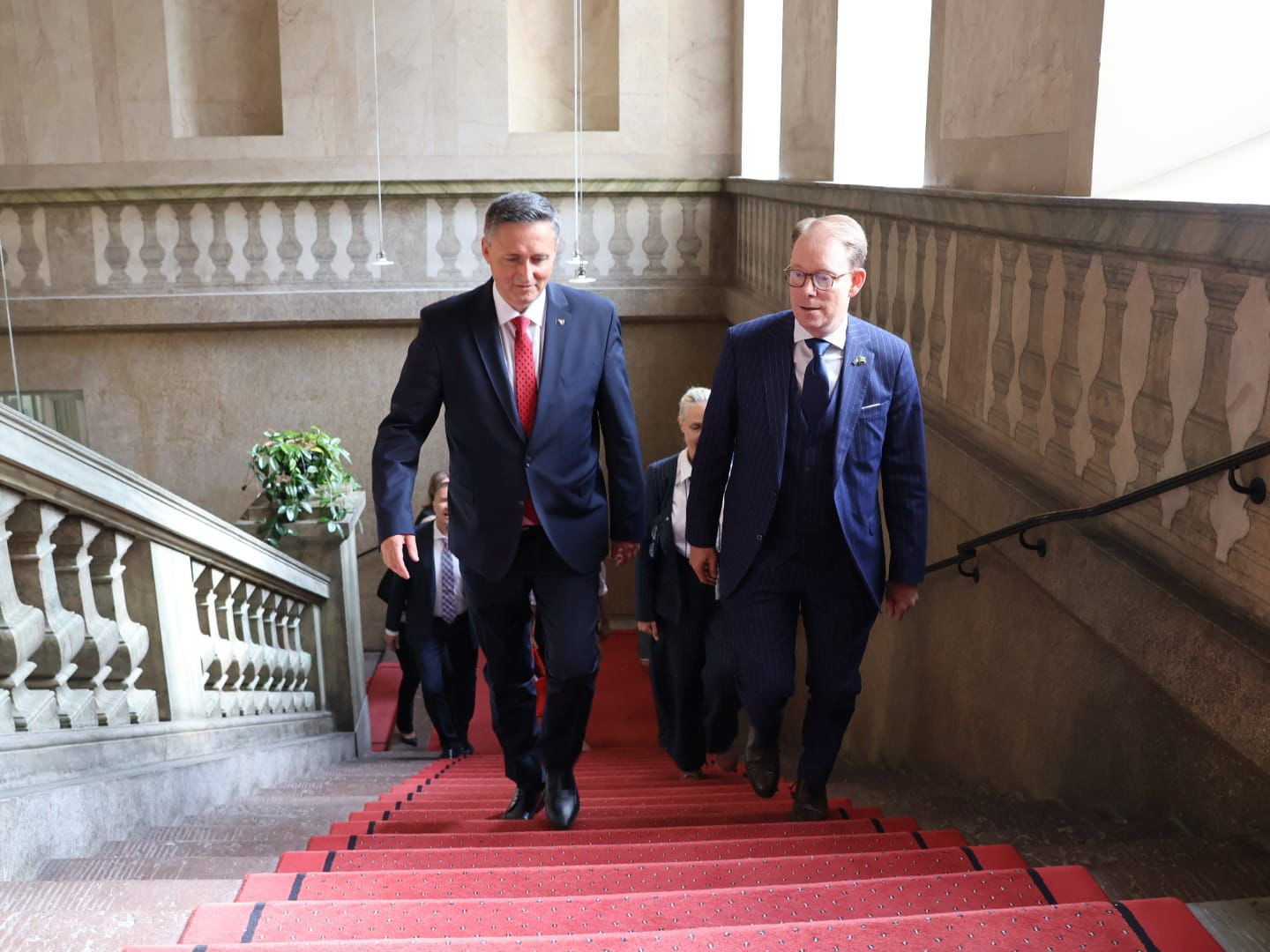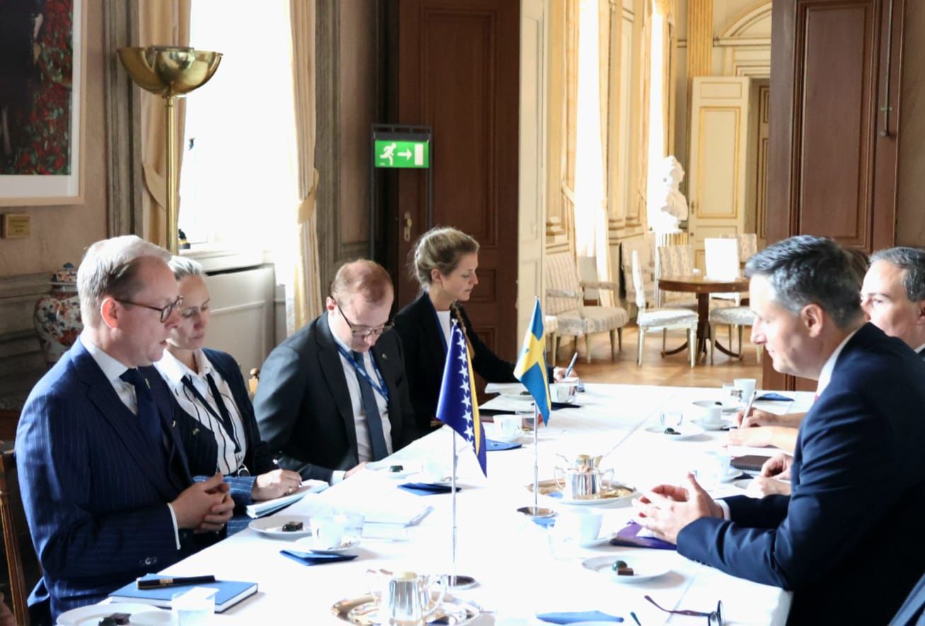 Ministar vanjskih poslova Kraljevine Švedske Tobias Billström iskazao je važnost prve posjete predsjedavajućeg Predsjedništva BiH Kraljevini Švedskoj, kao i potrebu intenzivnije saradnje najviših zvaničnika dvije države. On je snažno naglasio punu podršku nezavisnosti, suverenitetu i teritorijalnom integritetu Bosne i Hercegovine, te istakao privrženost Švedske miru i stabilnosti u Bosni i Hercegovini i regiji. Podsjetio je da se Švedska na 28. godišnjicu potpisivanja Dejtonskog mirovnog sporazuma priključila sastavu EUFOR-a (ALTHEA) i time se dodatno obavezala na pružanje podrške očuvanju sigurnosti i stabilnosti države Bosne i Hercegovine. Također, on je istakao da Kraljevina Švedska podržava proširenje EU, kao i evropske i evroatlantske integracije Bosne i Hercegovine.