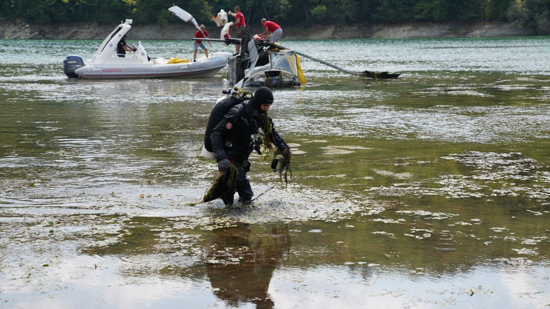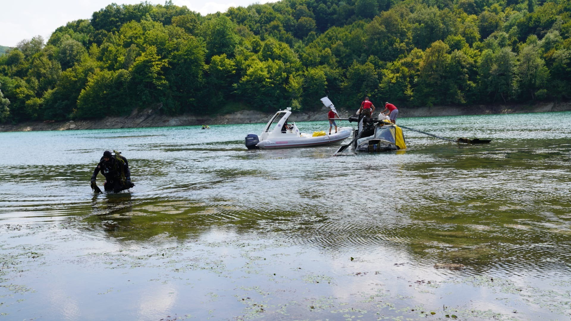 Pripadnici Federalne uprave civilne zaštite FBiH danas su nakon velikih napora uspjeli da izvuku helikopter Oružanih snaga iz Jablaničkog jezera.