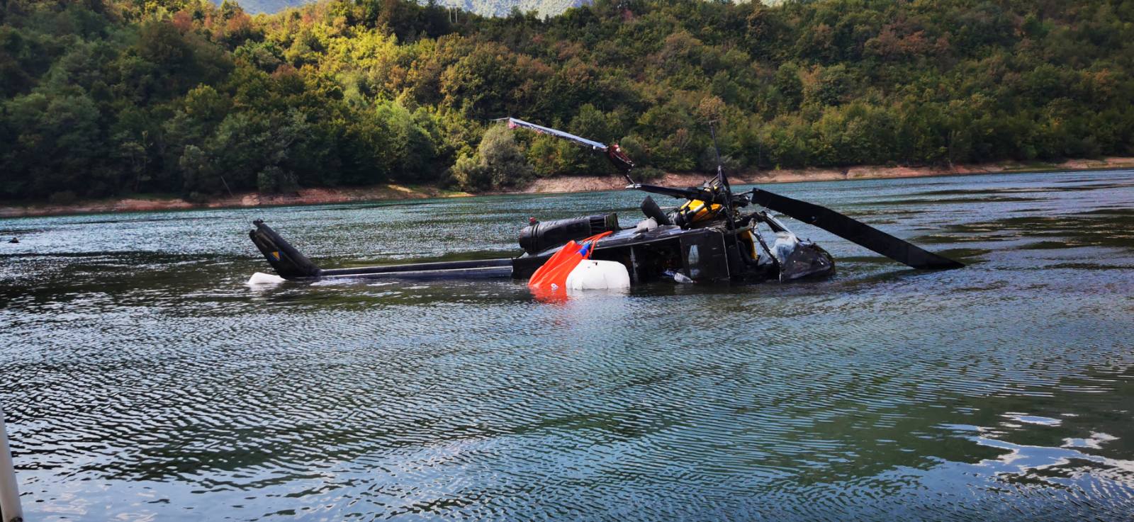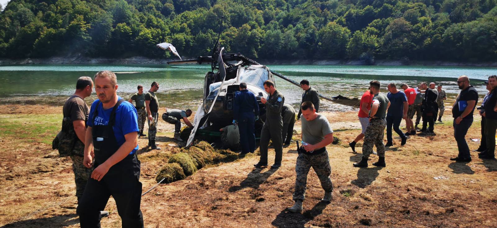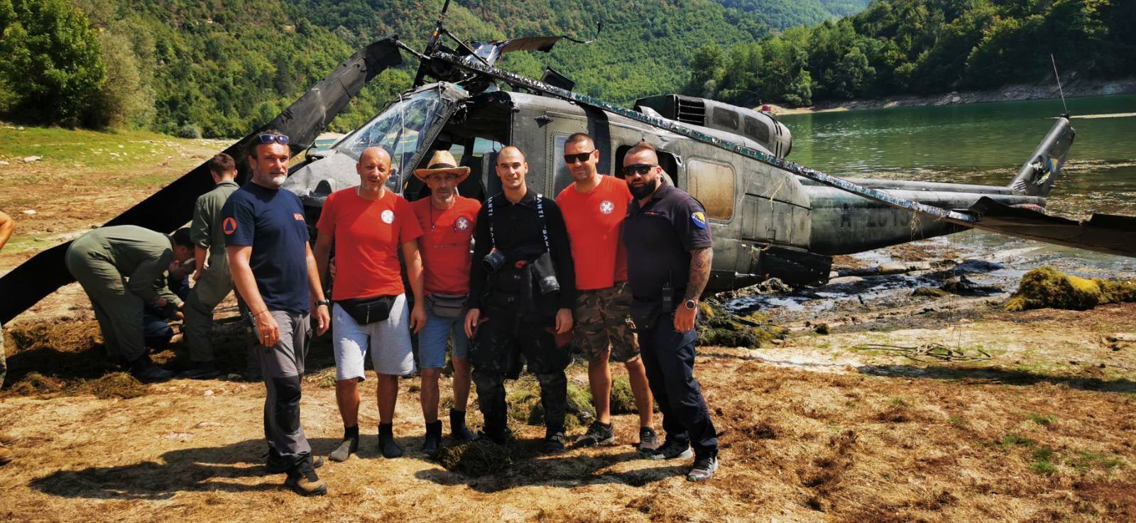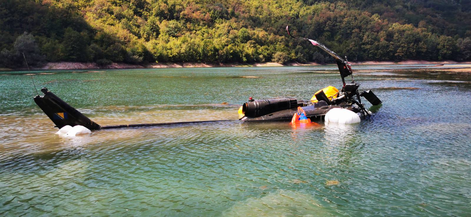 - Letjelica se na jezerskom dnu nalazila na rotorskoj elisi na maloj dubini, odnosno plitko u vodi što je zaista otežavalo dalji rad. Plan je bio da padobranima na napuhavanje okrenemo helikopter na tzv. skije, kako bi ga zakačili i na skijama izvukli na obalu sa minimalnim oštećenjima. Radi se o kompleksnoj podvodnoj operaciji pristupanja, sigurnog i pravilnog vezivanja, balansiranog rotiranja, vertikalnog lifta-podizanja, a zatim horizontalnog privlačenja ka obali.
