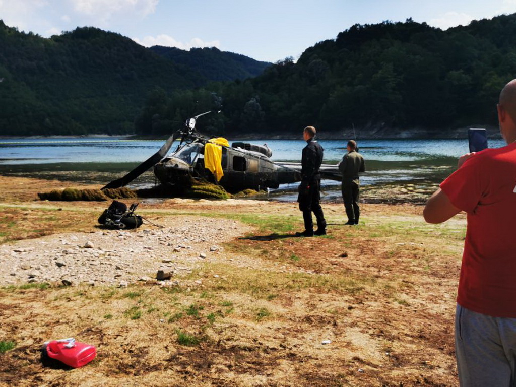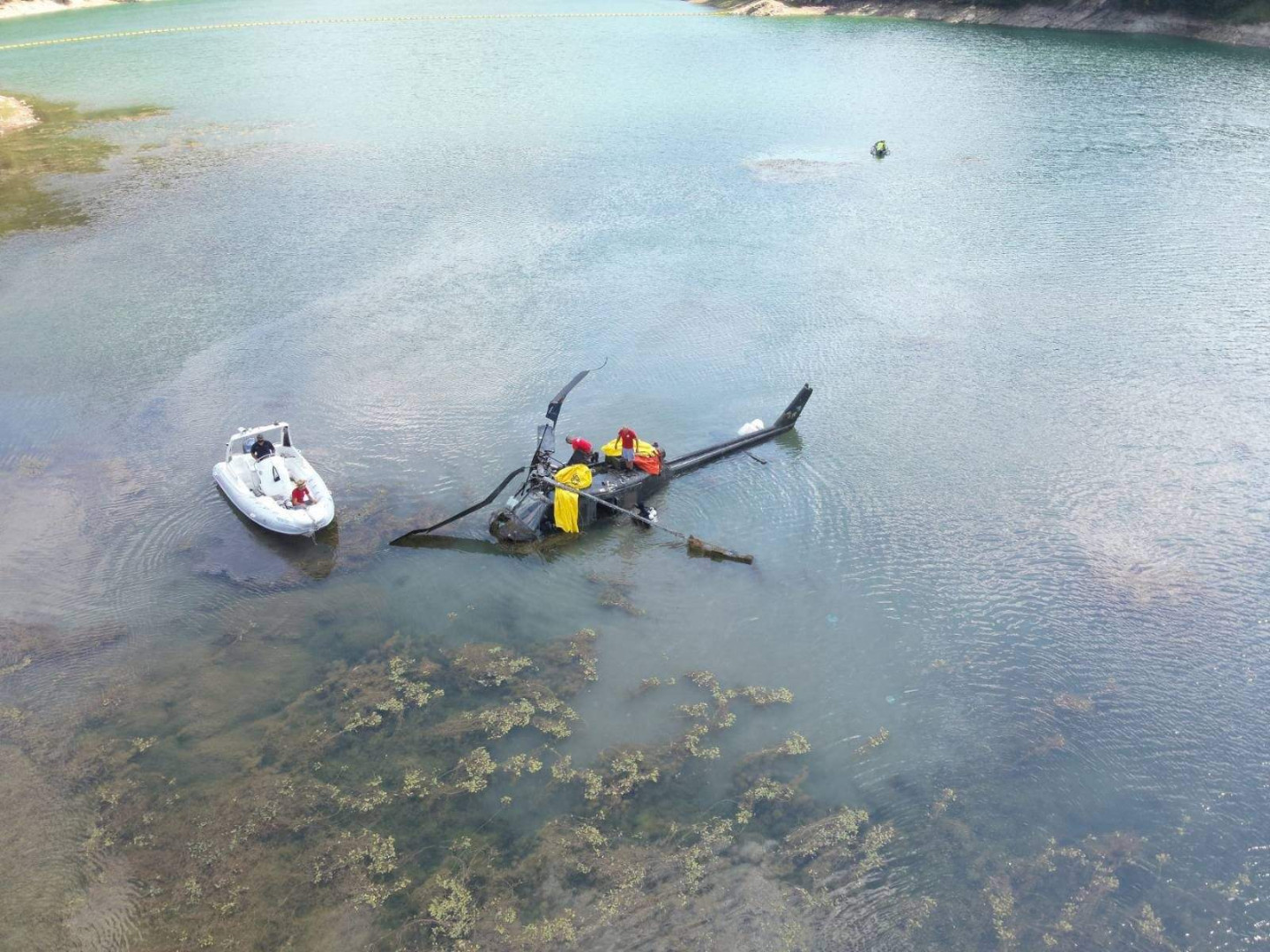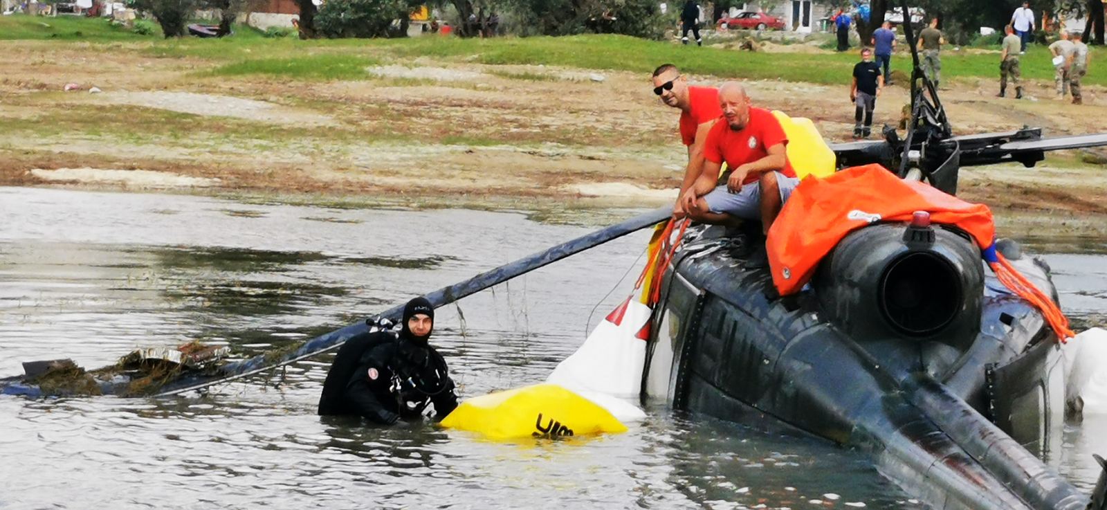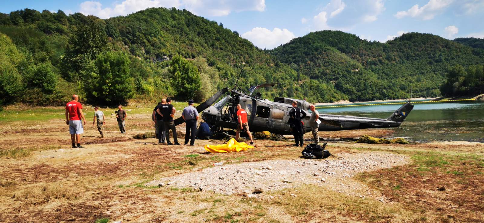 - Letjelica se na jezerskom dnu nalazila na rotorskoj elisi na maloj dubini, odnosno plitko u vodi što je zaista otežavalo dalji rad. Plan je bio da padobranima na napuhavanje okrenemo helikopter na tzv. skije, kako bi ga zakačili i na skijama izvukli na obalu sa minimalnim oštećenjima. Radi se o kompleksnoj podvodnoj operaciji pristupanja, sigurnog i pravilnog vezivanja, balansiranog rotiranja, vertikalnog lifta-podizanja, a zatim horizontalnog privlačenja ka obali.