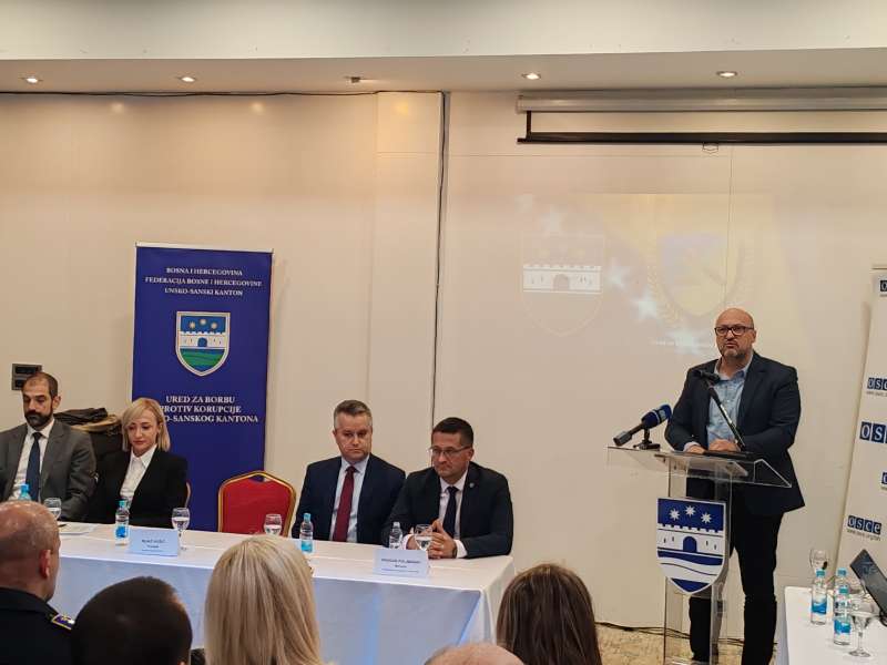 ... što je rezultat zajedničkog rada Ureda za borbu protiv korupcije i Vlade Unsko-sanskog kantona, uz podršku misije OSCE-a u Bosni i Hercegovini.