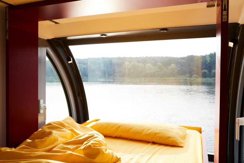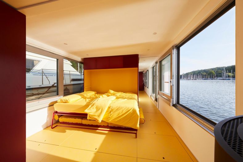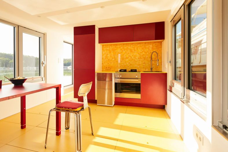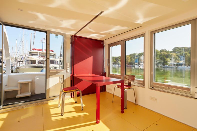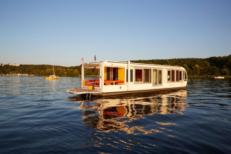 Upravo takva je plutajuća kućica privezana na jezeru Stößensee u Berlinu. Vlasnica Marianne Friese, uz pomoć internacionalne tvrtke Crossboundaries sa sjedištem u Pekingu, gotovo dvije godine predano je radila na svakoj stavki projekta, prije no što je kućicu uspješno porinula.