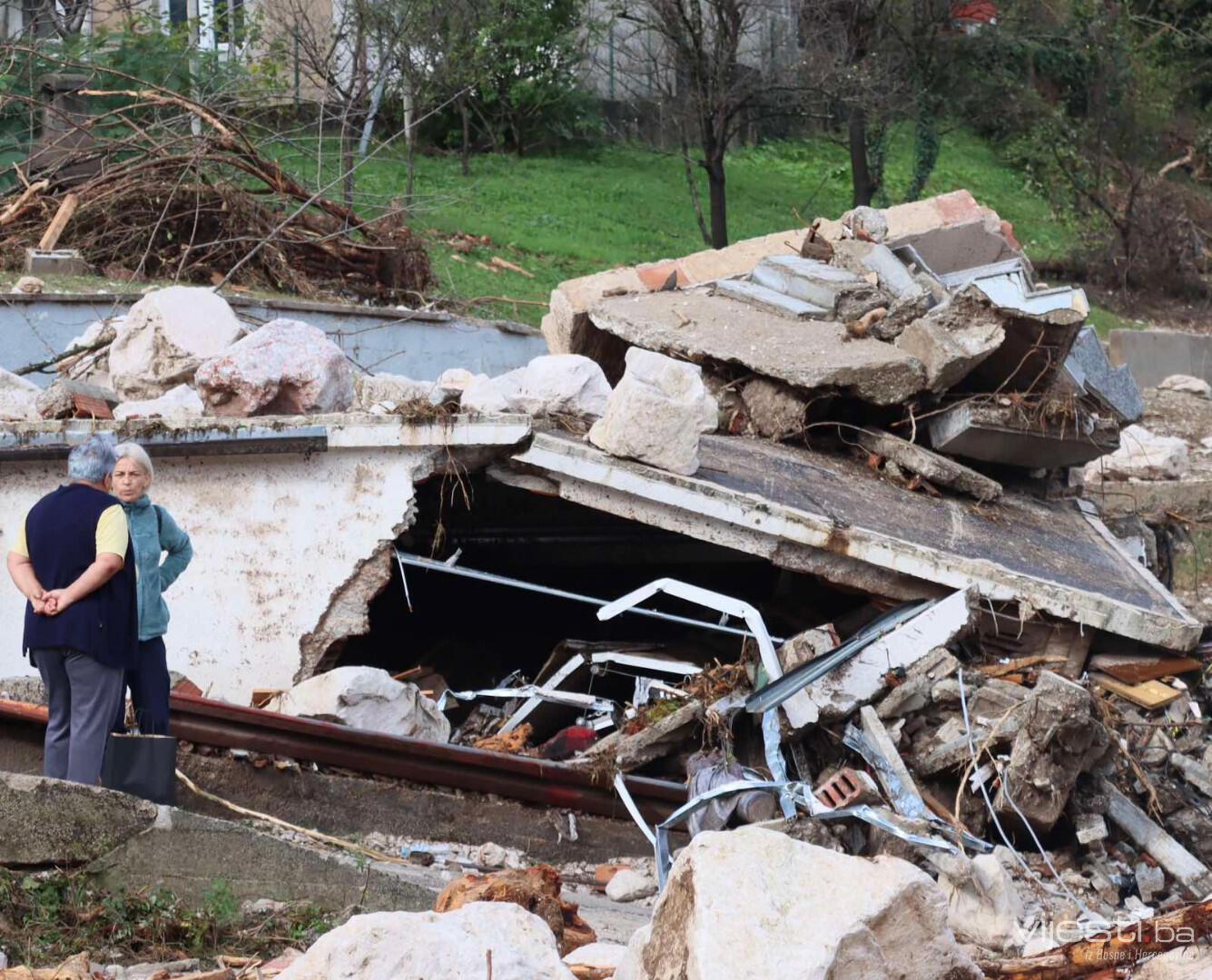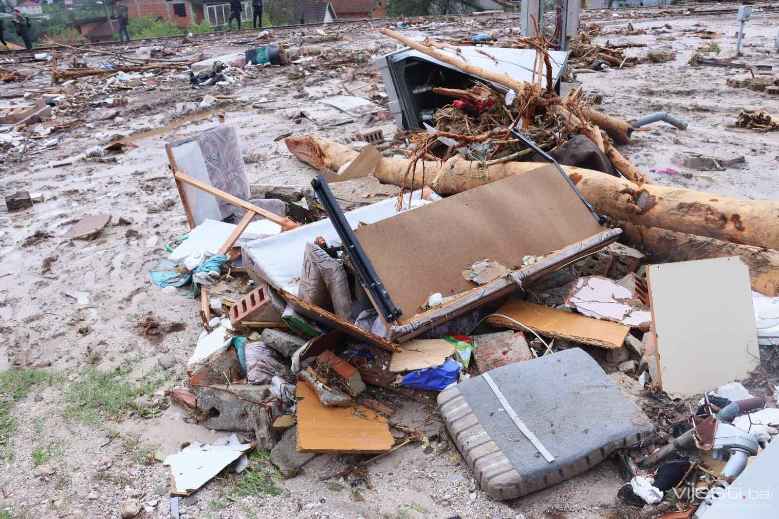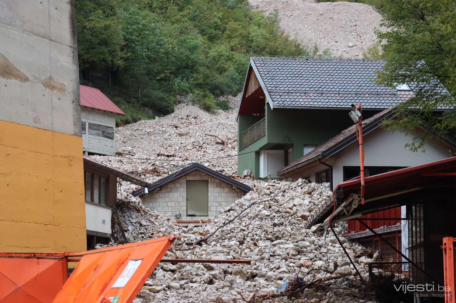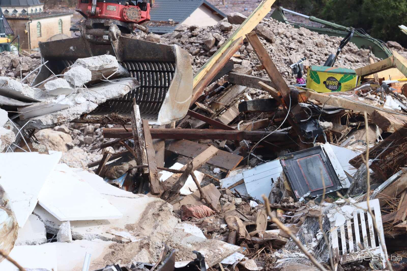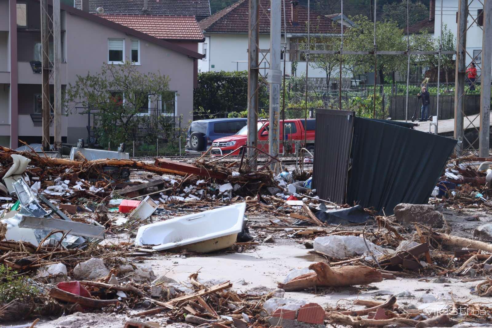 Na području Grada Konjica potpuno je uništeno dvadesetak kuća, a ta se brojka u Jablanici penje na više desetina. Spasilačke su ekipe i dalje na terenu i intenzivno nastavljaju traganje za nestalima, radeći i na uklanjanju nastale štete. Stručni timovi uporedno djeluju na saniranju porušene cestovne i željezničke, telekomunikacijske i elektroenergetske infrastrukture.