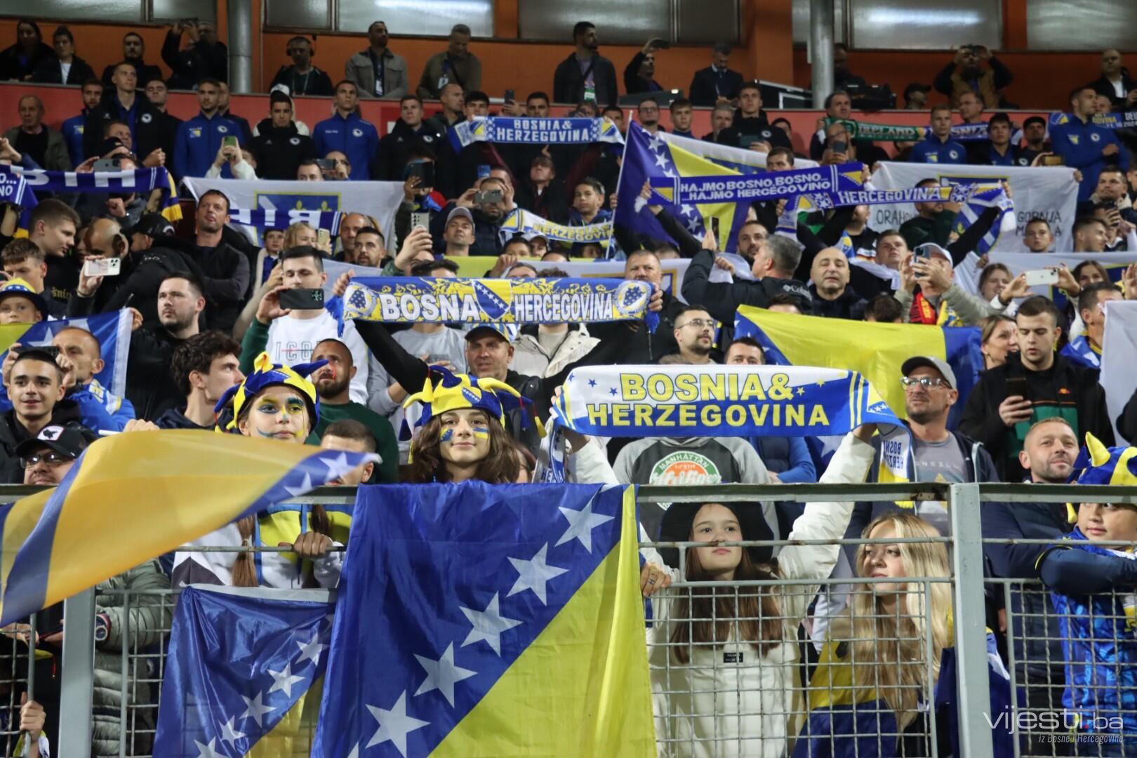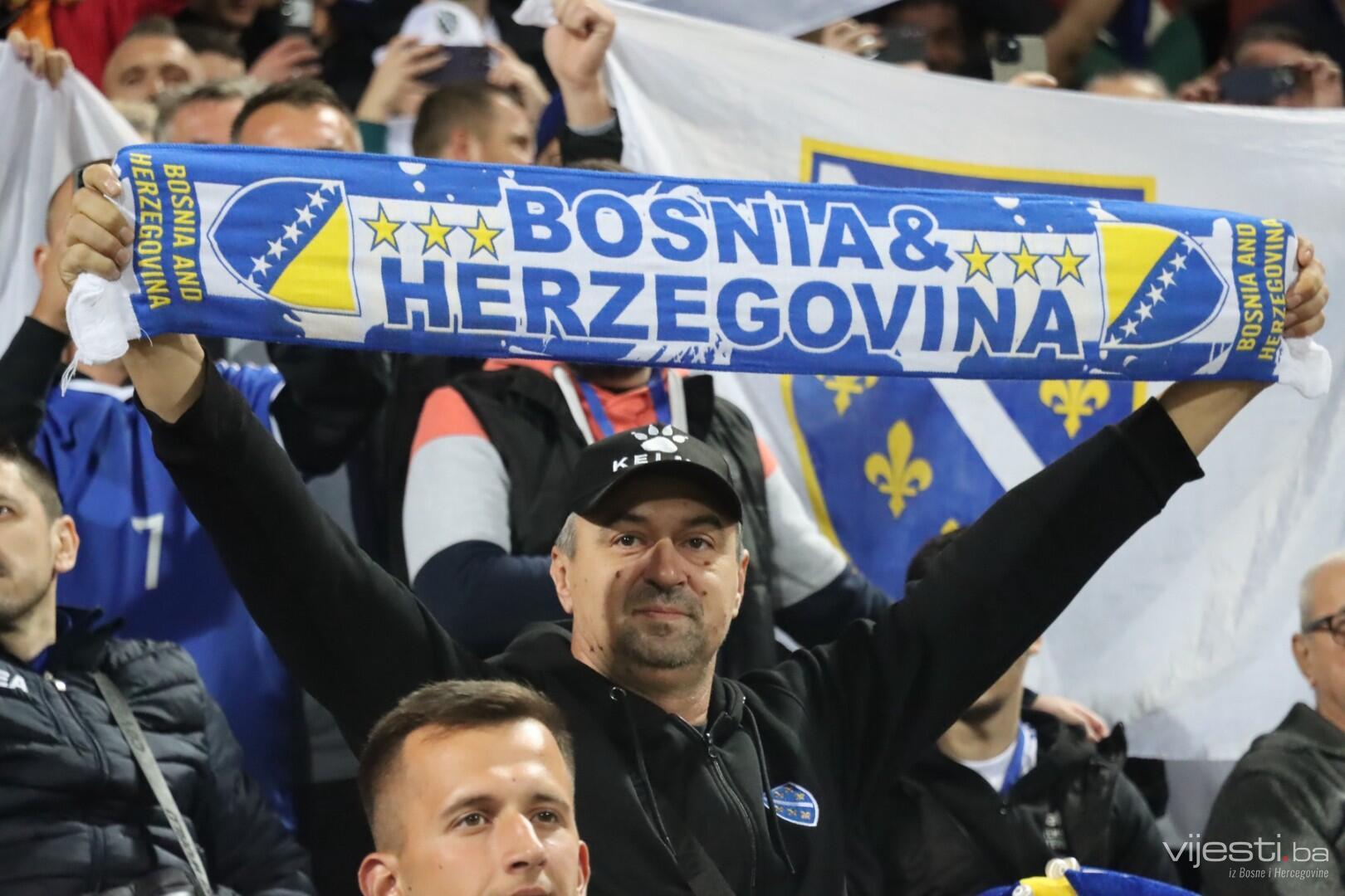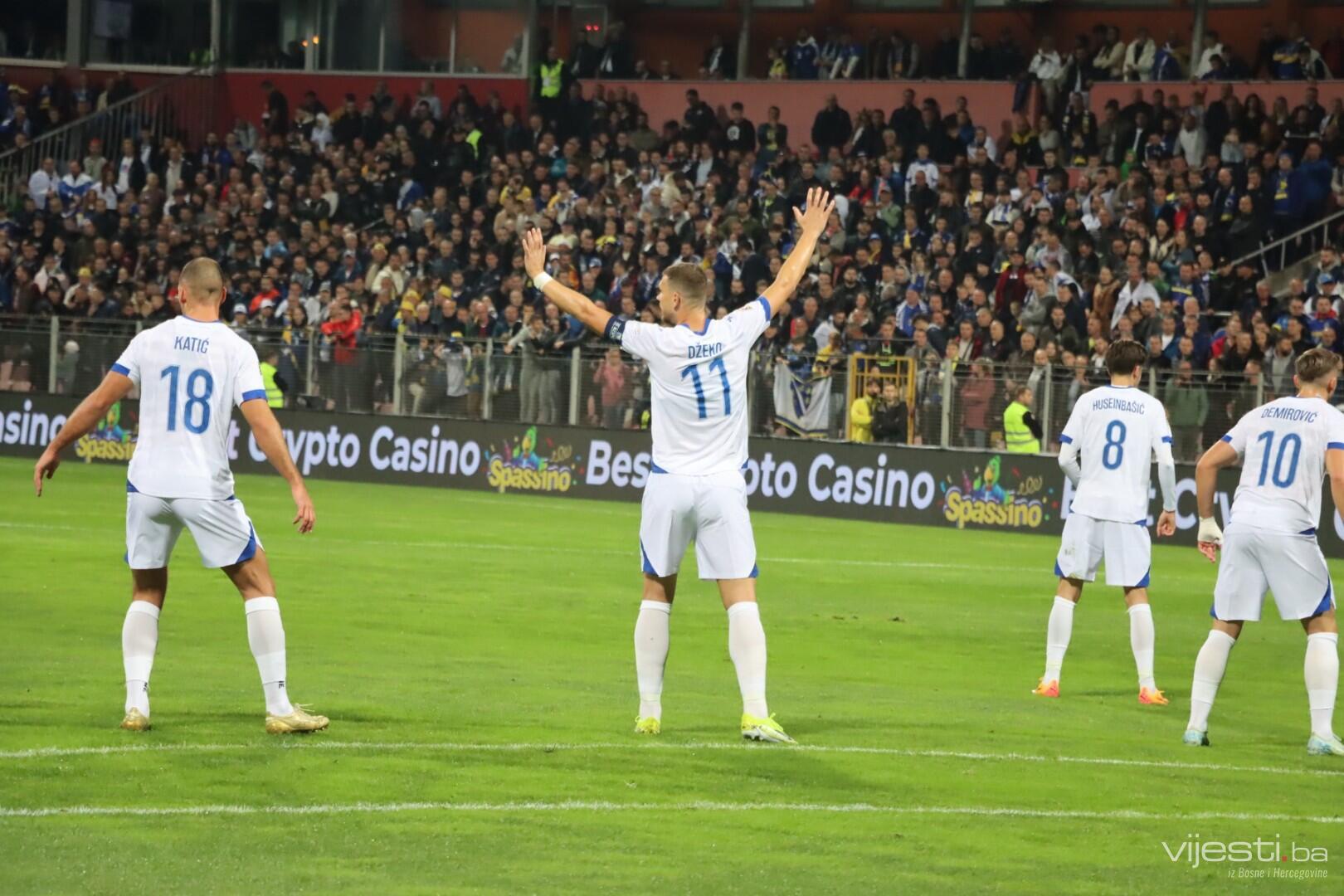 Naš tim je dobro ušao u meč i zaprijetio već u 4. minuti preko Bašića iz slobodnog udarca. Pet minuta kasnije, Džeko je centrirao, a Demirović iz nezgodne pozicije uhvatio volej ali lopta odlazi visoko preko gola.
